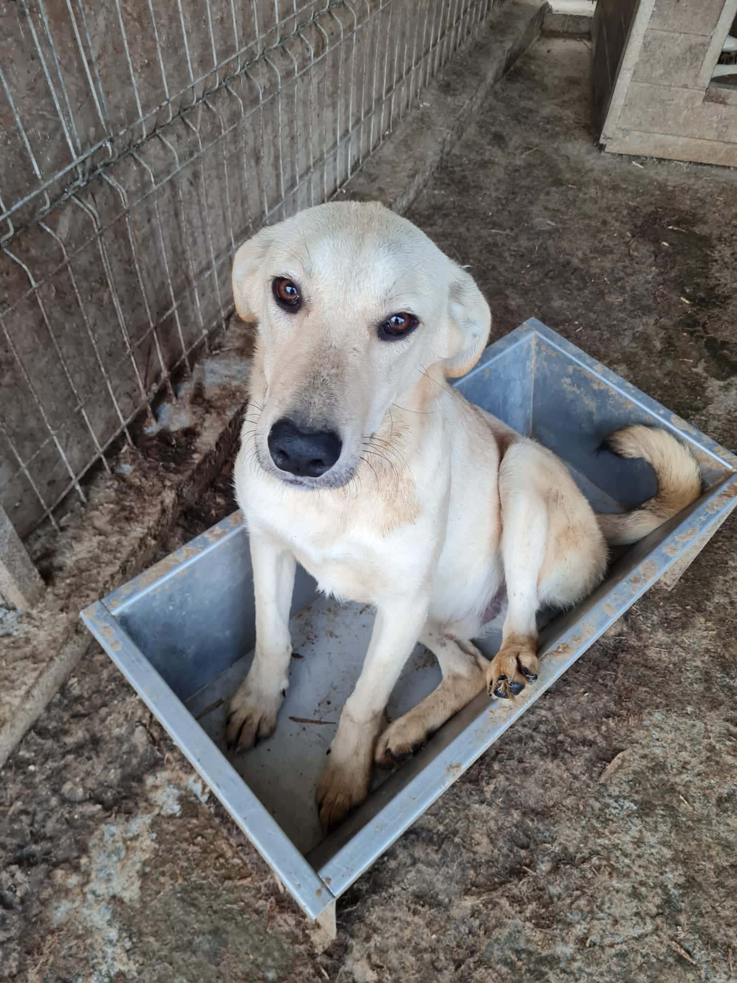 SANDMANN, ein wunderschöner Rüde, ist seit drei Jahren im Shelter, hat leider nie wirklich eine Chance bekommen. Unter Bedrängung lässt er sich anfassen, bleibt dabei stets devot. Man merkt, dass er Berührungen noch nicht genießen kann. In einer ruhigen, sicheren Umgebung würde Sandmann mit etwas Geduld sicher weiter auftauen. Mit anderen Hunden ist er sehr verträglich.