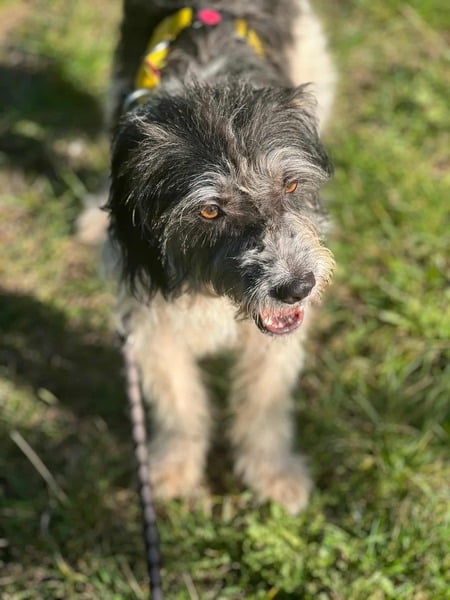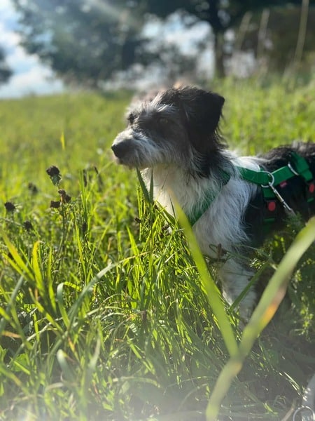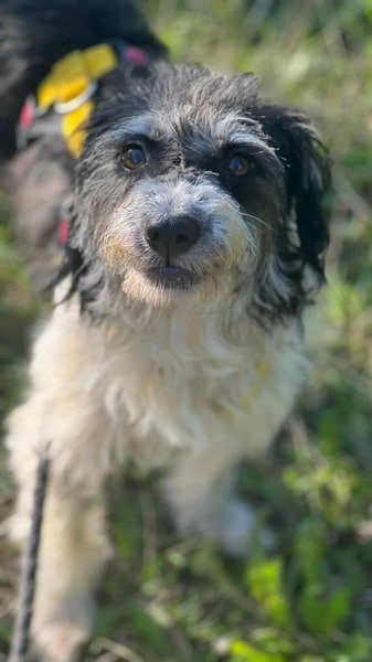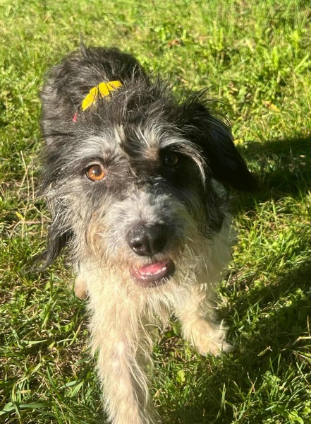 Sanny hat nicht nur ein zauberhaft, einmaliges Gesicht, sie ist auch eine ganz tolle Partie wenn es um Hund und Mensch geht. Sie ist offen, fröhlich und hat Lust auf’s Leben. Ihr wuscheliges Äußeres spiegelt auch genau ihren Charakter wieder. Quirlig, freudig aufgeregt und wahnsinnig liebebedürftig kommt sie daher. Sie freut sich auf ihre Gassirunde und springt wie ein kleiner Floh um ihren Menschen herum. Natürlich muss sie manchmal ein bisschen gebremst werden bei ihren Ambitionen,aber Sanny lässt sich wunderbar auf ruhigere Momente ein, in denen sie entspannen darf. Die spritzige Junghündin ist eine super Ergänzung zum bestehenden Rudel, denn sie geht ganz wunderbar mit ihren Artgenossen um und genießt deren Gesellschaft sehr. Sanny ist aktuell noch sehr aufgeregt und alles ist noch neu für sie, mit einer festen familiären Grundlage, hätte sie nun endlich die Möglichkeit sich zu erden und alles in Ruhe kennenzulernen.