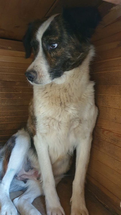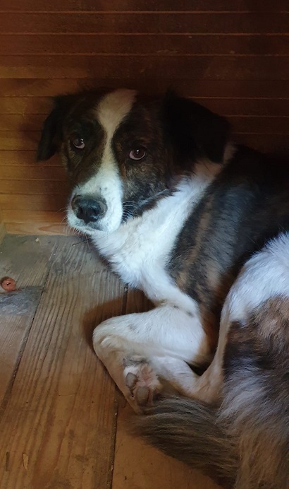 SAPHIRA hat sich uns Fremden gegenüber leider sehr zurückhaltend gezeigt. Sie wollte kein Futter aus der Hand nehmen und versteckte sich die ganze Zeit in der Hütte, als wir im Kennel waren.