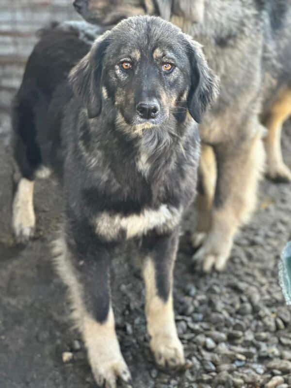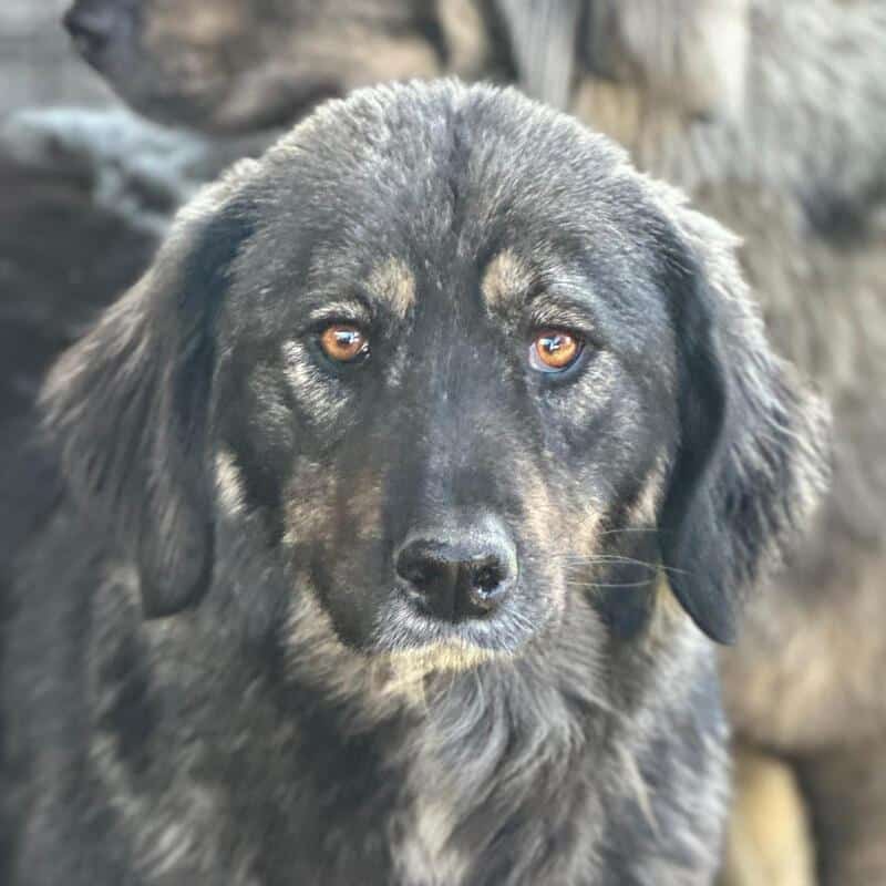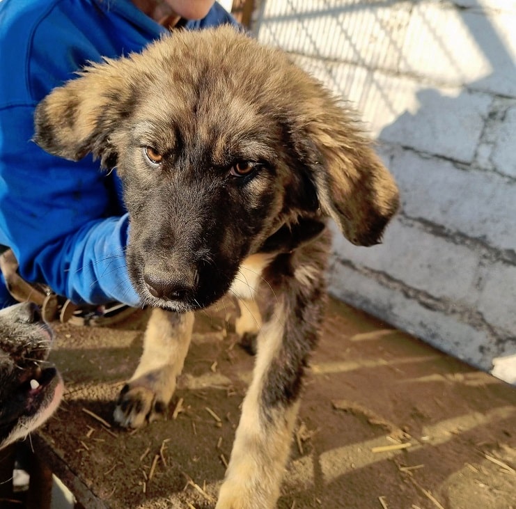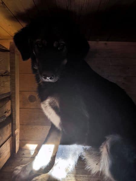 Sarah ist die schüchternste von ihren Geschwistern. Sie war zwar neugierig, aber Leckerli nahm sie nur vom Boden. Anfassen konnten wir sie nur unter Bedrängung in der Hütte. Sarah sollte dringend zu HSH-erfahrenen Menschen ausreisen.