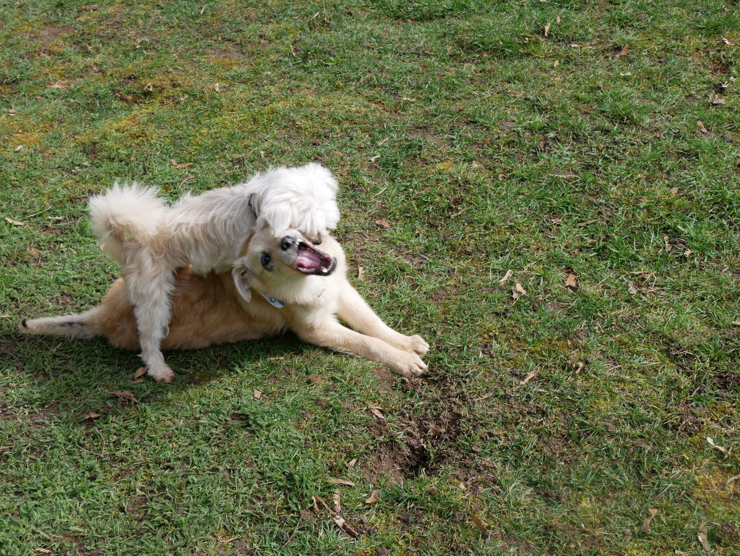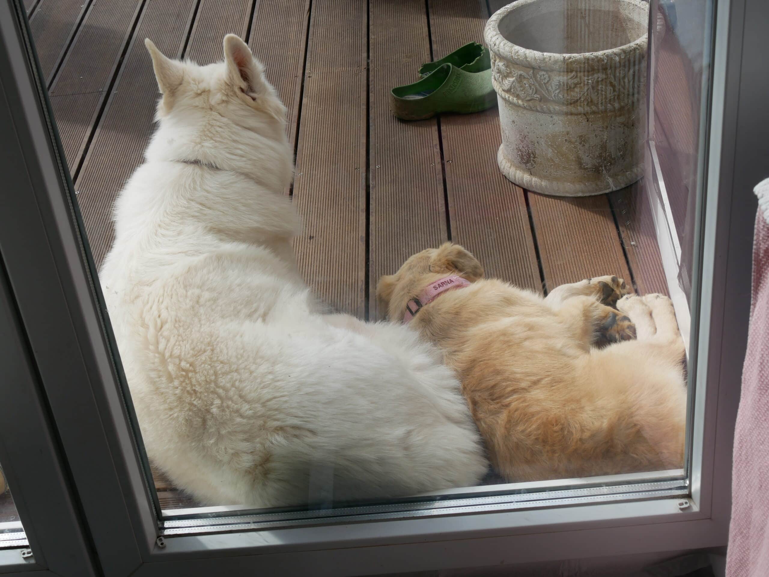 Im Garten findet sie es prima mit ihren PS-Schwestern; wenn das PS-Frauchen jedoch reingeht, mag sie auch reingehen. Oder wartet brav und geduldig vor der Tür, bis sie rein kann oder das PS-Frauchen wieder rauskommt.
