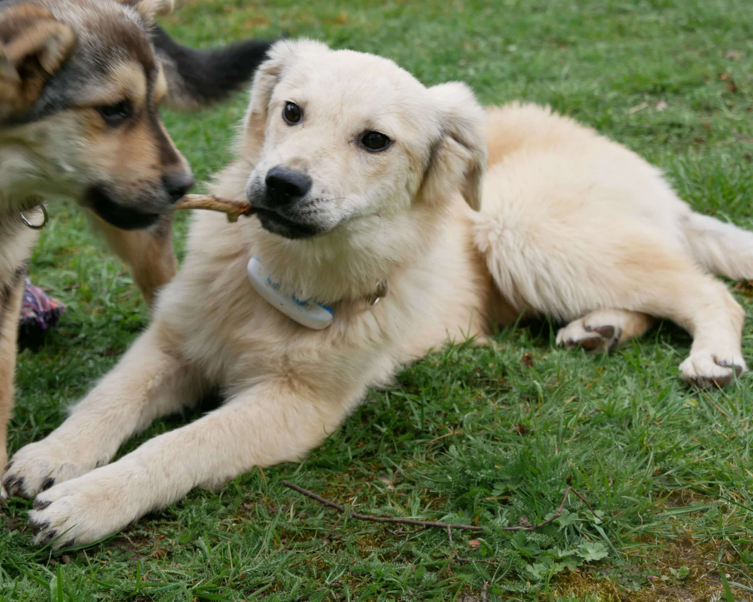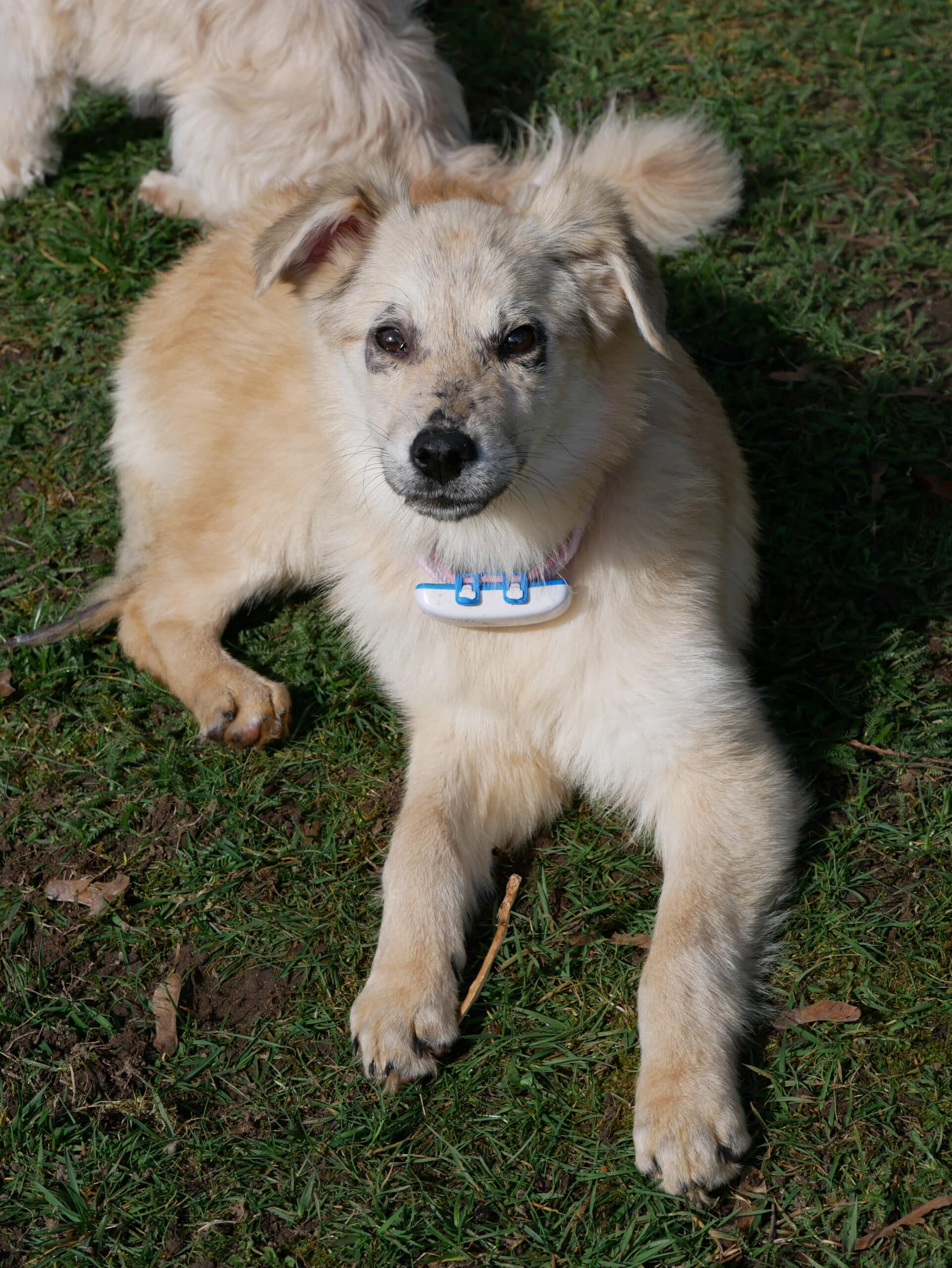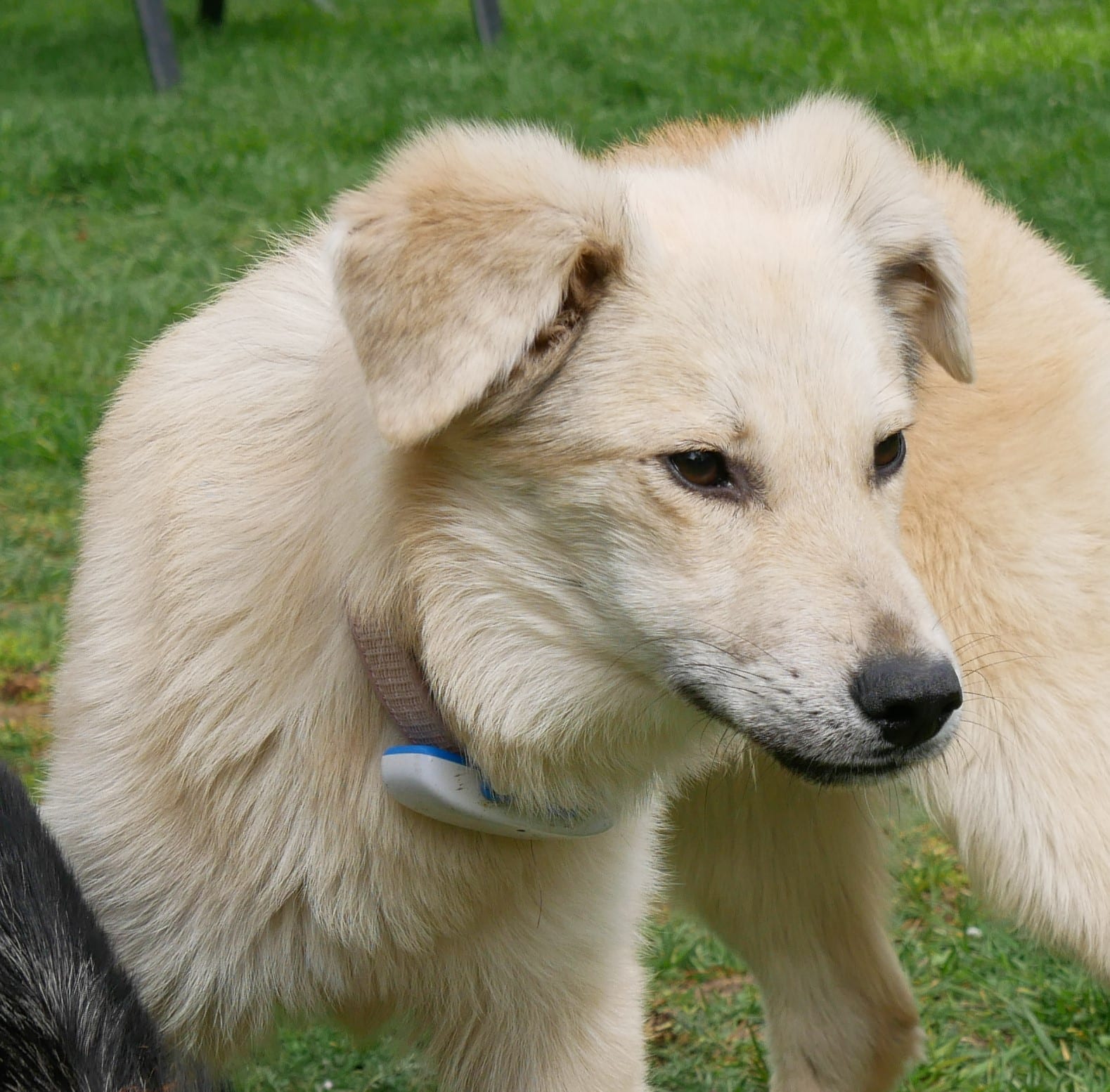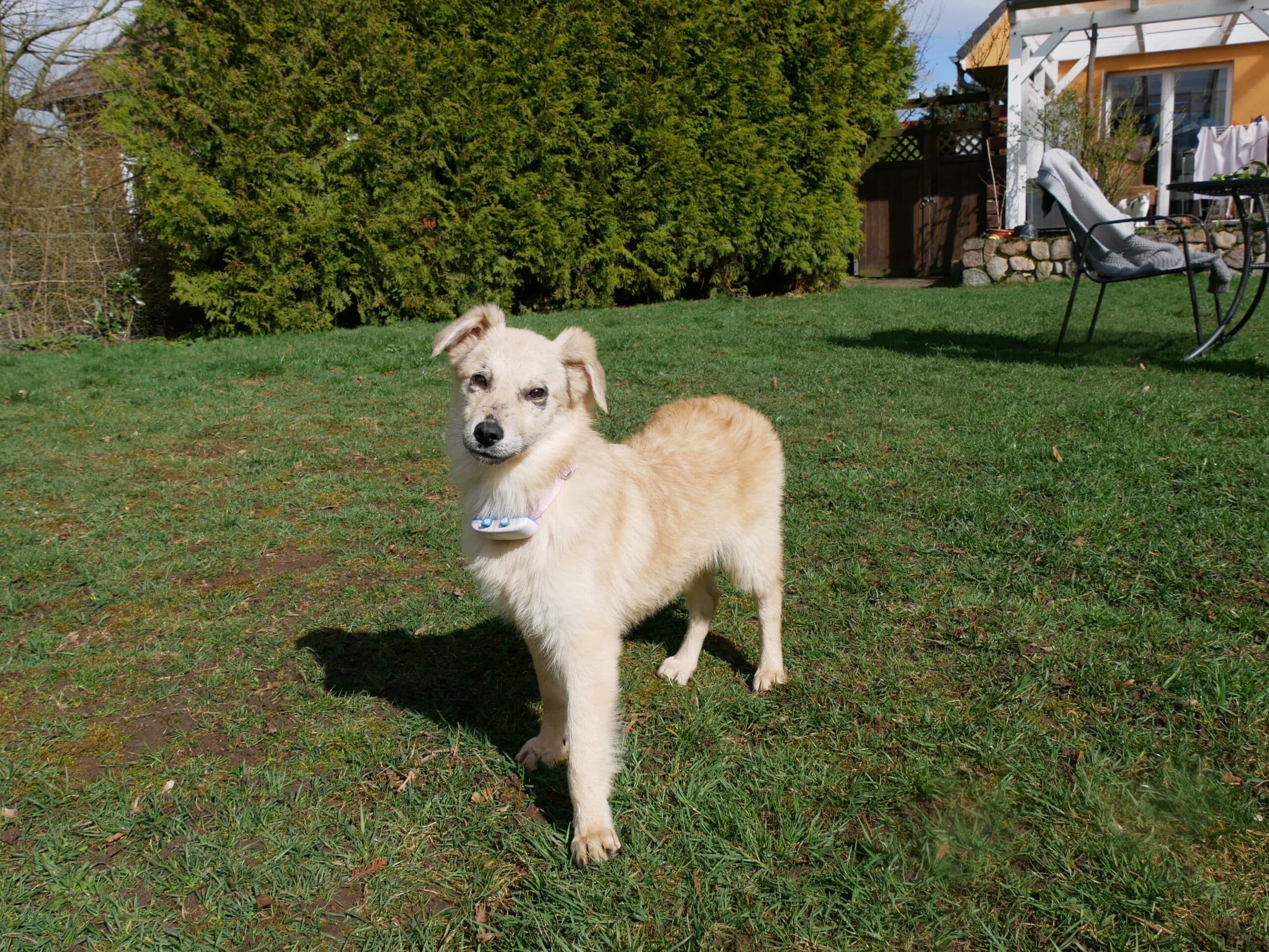 Im Auto mitfahren klappt prima, Gassi gehen ebenso. Hier orientiert sie sich sehr am PS-Frauchen; eine gute Voraussetzung für späteren Freilauf. Sie mag Wasser, das Baden hat sie problemlos mitgemacht. Bei Wind und Wetter geht es gerne raus und sie untersucht auch gerne mal das nahegelegene Bächlein.