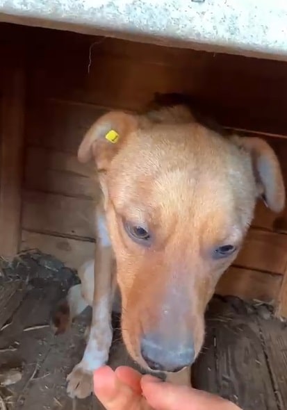 SAROO ließ sich in der Hütte unter Bedrängung von uns anfassen und blieb dabei devot. In einem schönen Zuhause wird er sicherlich nach einer ersten Eingewöhnungsphase zu einem loyalen Begleiter.