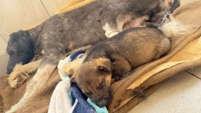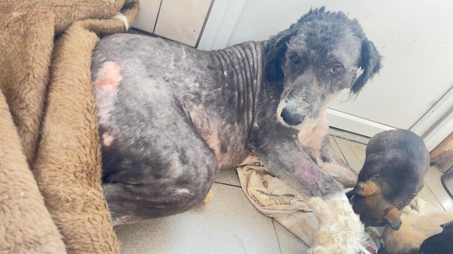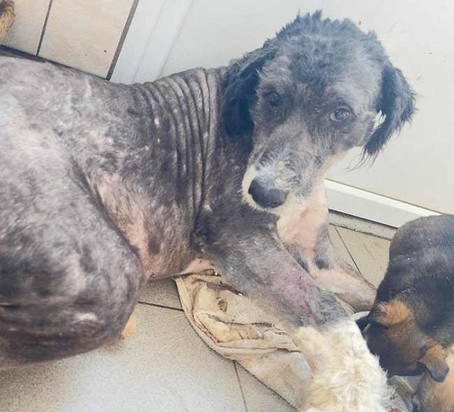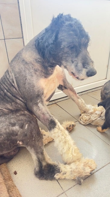 Dieser älterer Rüde wurde von einem Auto angefahren. Er hatte einen schweren Unfall. Ein aufmerksamer Bewohner sah den angefahrenen Opi und brachte ihn ins Shelter. Dort stellten wir fest, dass sein Vorderbein gebrochen ist und dringend eine Blutung am Penis abgeklärt werden muss. Daher wird er in die Klinik müssen. Er hat auch einige Hautprobleme, die man mit gutem Futter und Pflege auch wieder hinbekommen kann. Er zeigt sich als verträglich zutraulich und wirklich sehr rührend. Die Welpen haben sich sofort zu dem Opi gelegt und leisten ihm Gesellschaft, das hat ihn überhaupt nicht gestört. trotz dessen das er sicherlich Schmerzen gehabt haben muss, als er kam, ließ er sich ohne Probleme von den Mitarbeitern im Shelter behandeln und anfassen. Wir hoffen sehr, dass er nach seiner Genesung einen würdigen Rentnerplatz findet, damit er noch eine schöne Zeit verbringen kann.