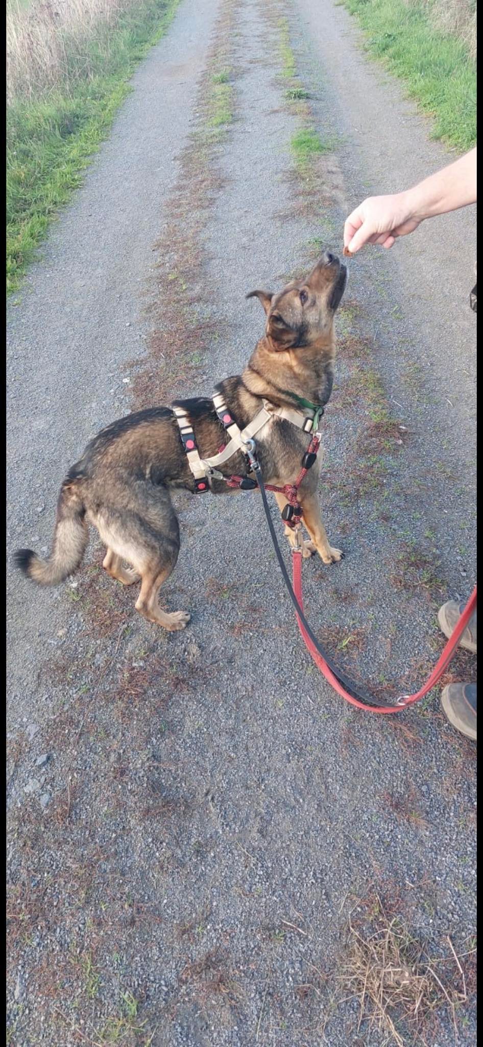 Bei fremden Menschen zeige ich mich noch etwas scheu, aber mit viel Geduld und Übung, kann ich die Scheu überwinden, wenn ich merke, dass du es gut mit mir meinst. Auch nehme ich vorsichtig Leckerchen und lasse mich dann auch anfassen.Trotzdem ist hier weiter Vertrauensarbeit gefragt.