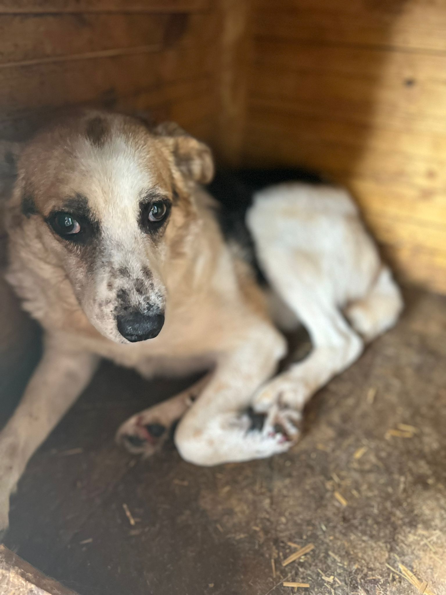 Nachdem ihre Welpen ausgereist sind, liegt SATU nur noch resigniert in der Hütte. Sie wirkt müde und gestresst. Wir wünschen uns so sehr, dass die super nette Hündin endlich ihre Menschen findet!