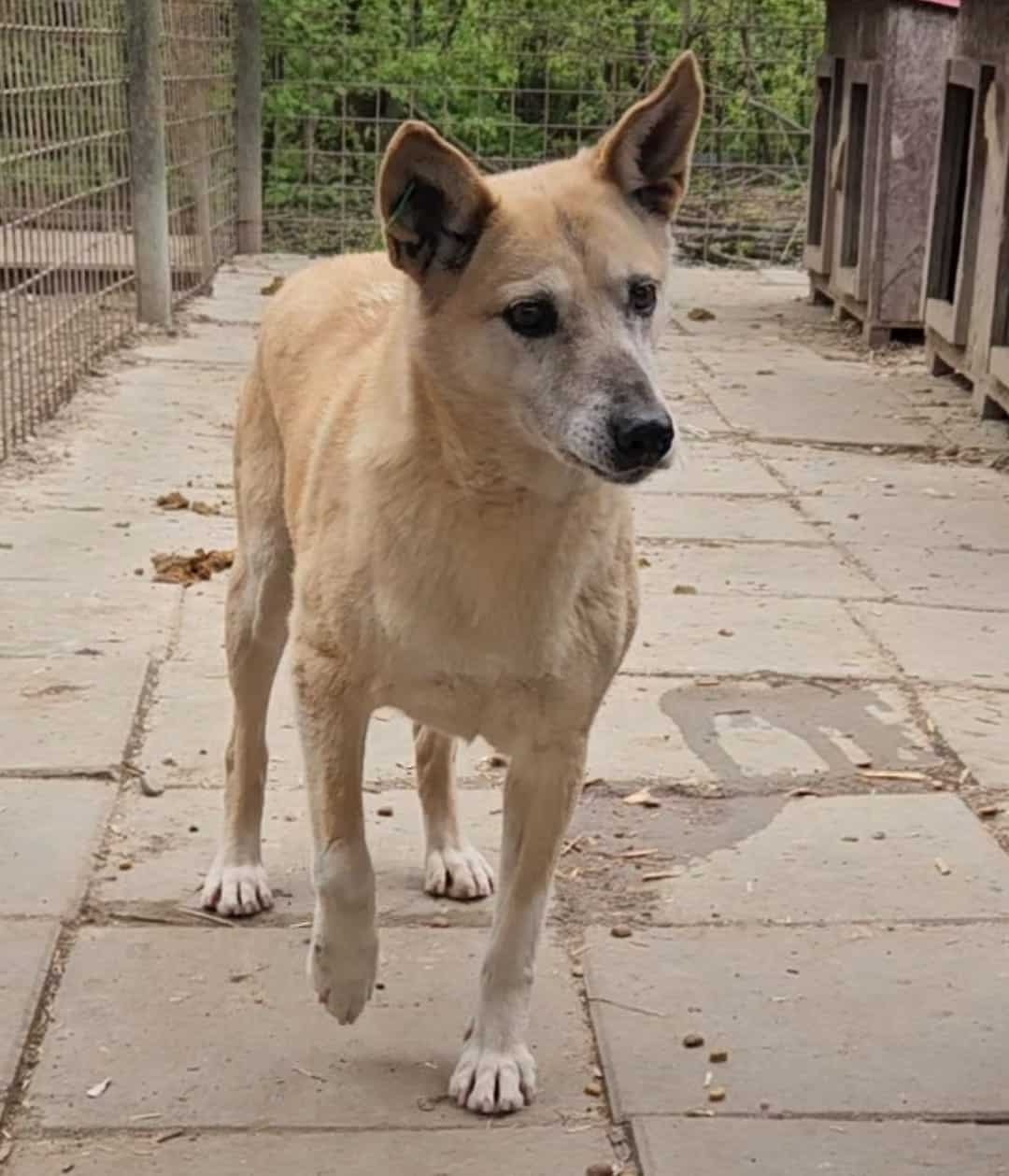 SAVANNAH sitzt nun schon mehr als die Hälfte ihres bisherigen Lebens, seit mind. 2018 in Bucov. Unser Besuch sowie die mitgebrachten Leckerchen waren ein kleines Highlight im tristen Shelteralltag. SAVANNAH hat sich dieses Mal auch näher an uns rangetraut, wobei der letzte Schritt um sie anfassen zu können leider noch immer gefehlt hat. Da sie uns aber neugierig begegnete, würde man mit Geduld und einigen Leckerchen sicher das Eis bald brechen können.