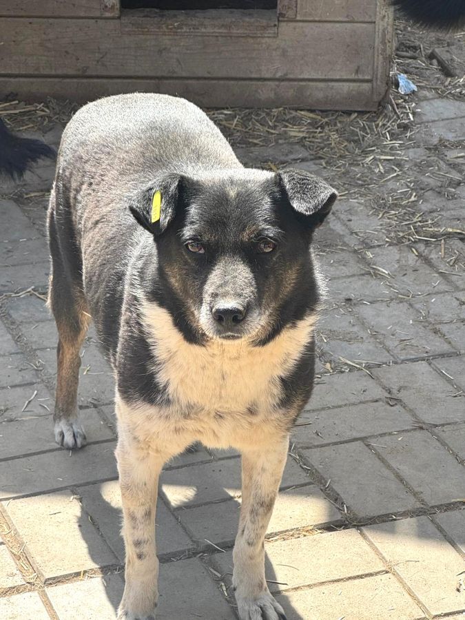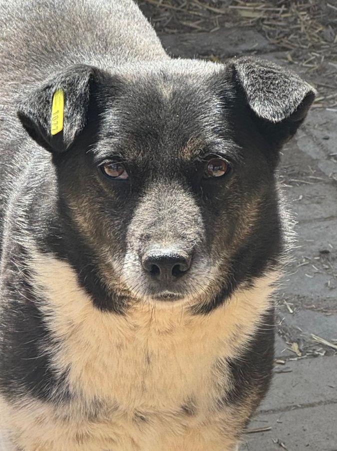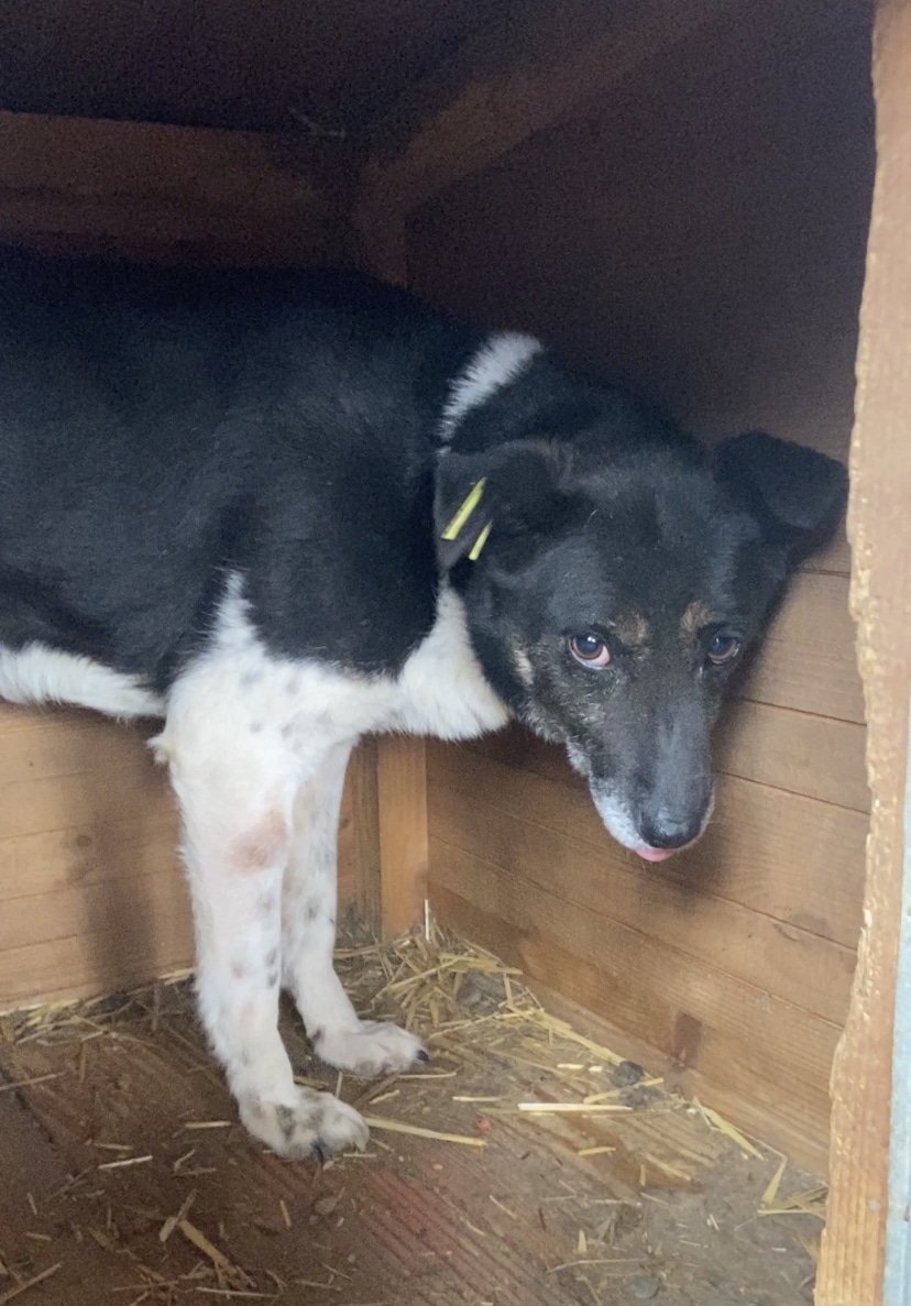 SCALA sieht man den Stress des Shelters an ihrem Schnäuzchen an. Sie ist grau geworden und hat eine Beule am rechten Vorderbein. Sie ist leider sehr unsicher uns Menschen gegenüber und zeigt auch ihre Neugier nicht mehr wie damals. Sie suchte Schutz in der Hütte und nimmt dort Leckerlie in unserem Beisein vom Boden, aber für mehr reicht der Mut nicht. Streicheln lassen wollte sie sich nicht, aber sie blieb bei den Versuchen stets defensiv und zeigte kein Abwehrverhalten. SCALA lebt in einem sehr großen gemischten Rudel und zeigt sich dort verträglich. Für unsere SCALA wünschen wir uns, dass sie noch einmal Gras unter ihren Pfoten spüren darf, ein warmes weiches Bettchen und Menschen mit viel Geduld, die nicht mehr zu viel von ihr erwarten.