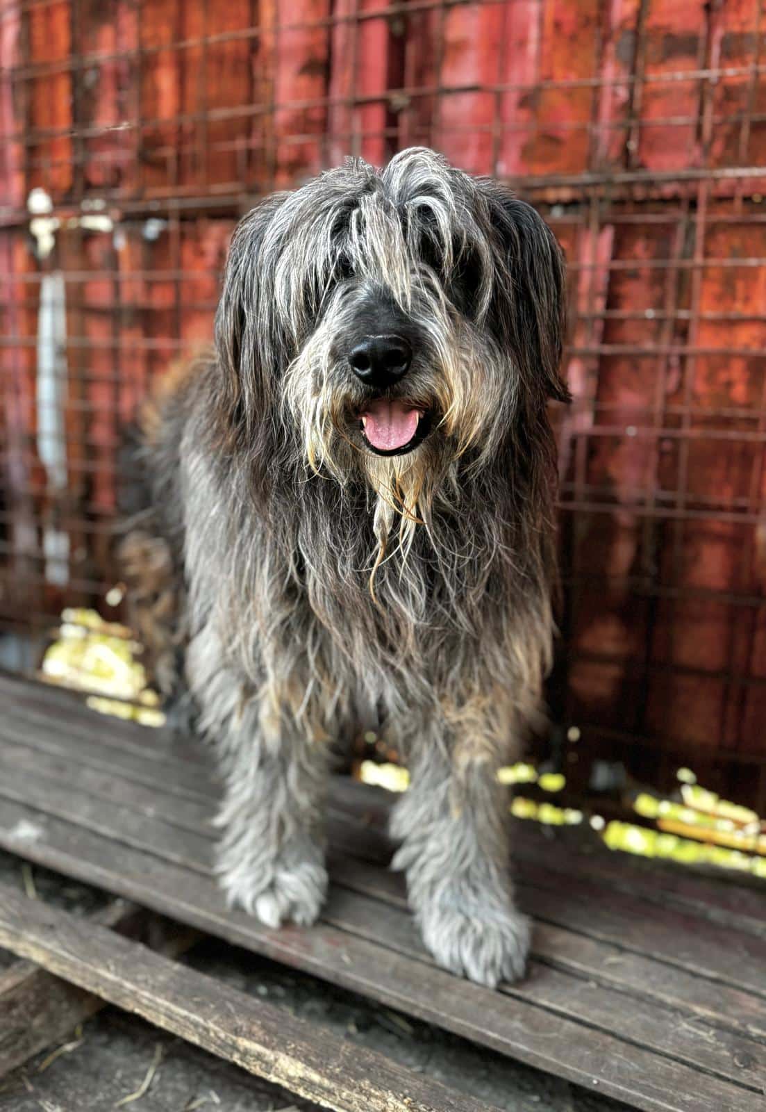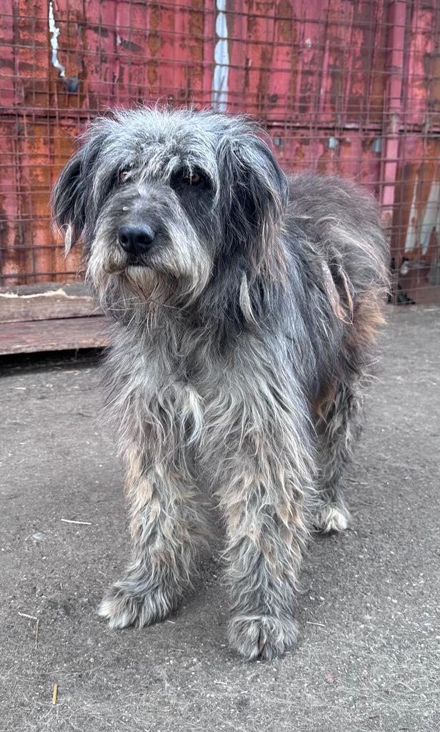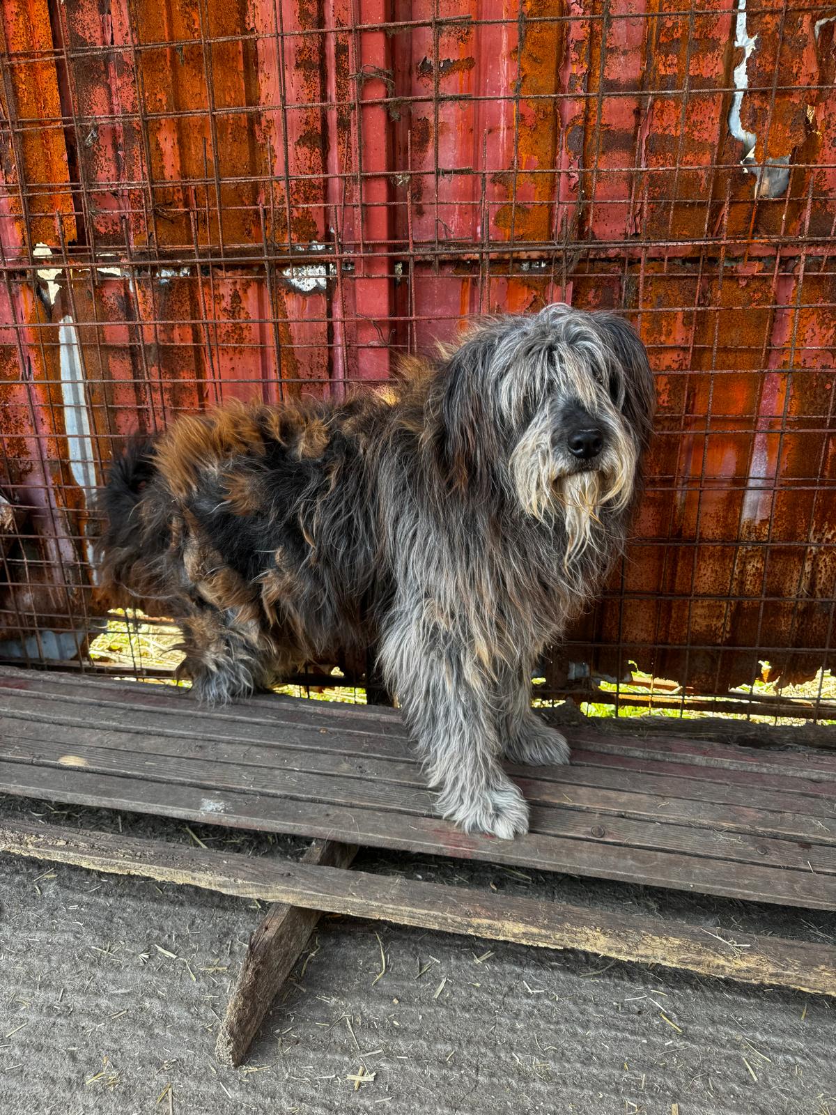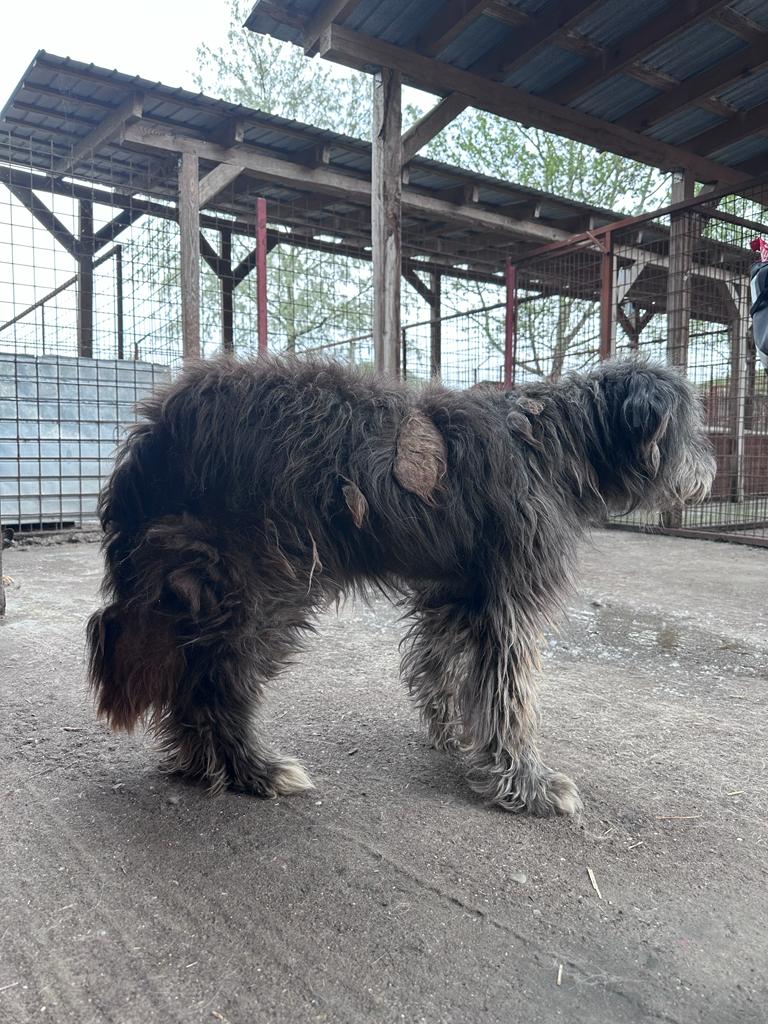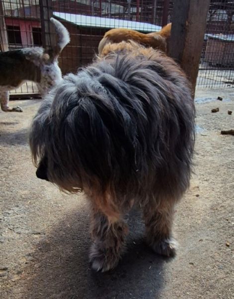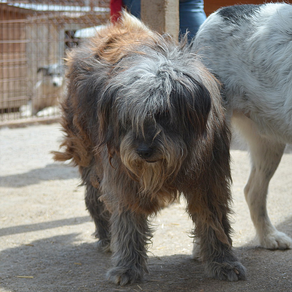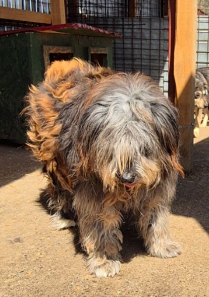 SCAMPOLO blieb stets ruhig und suchte immer unsere Nähe. Leckerli hat er gern aus der Hand genommen. Er ist total verfilzt, die Platten hängen überall herunter.