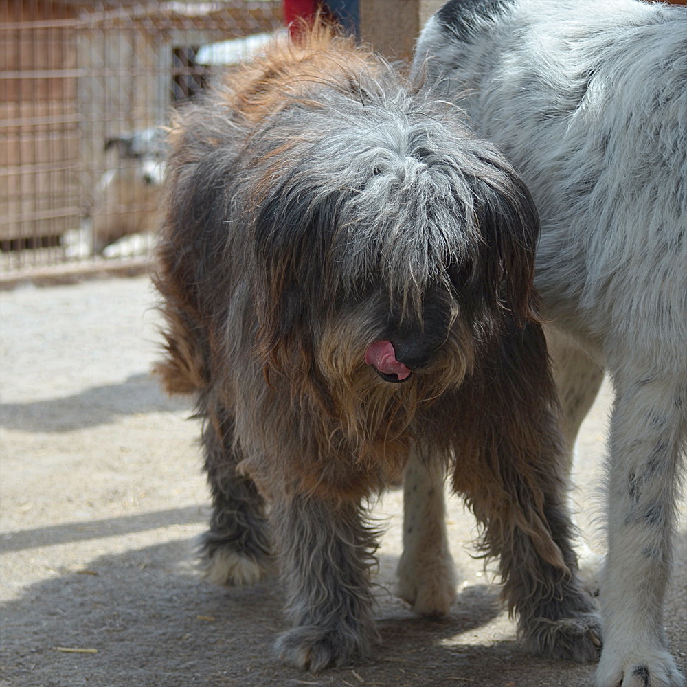 SCAMPOLO leidet! Dicke Filzplatten lassen im Sommer keine Luft an seinen Körper, seine Haut kann nicht atmen. Im Winter werden die Filzplatten nass und bleiben nass. Eine Funktion hat das „Fell“ somit nicht mehr, sondern schadet noch. Hinzu kommt, dass er von den anderen Hunden schlecht gelesen werden kann, da seine Mimik durch den Behang nicht sichtbar ist. Wir hoffen, es wird ihm nicht zum Verhängnis.