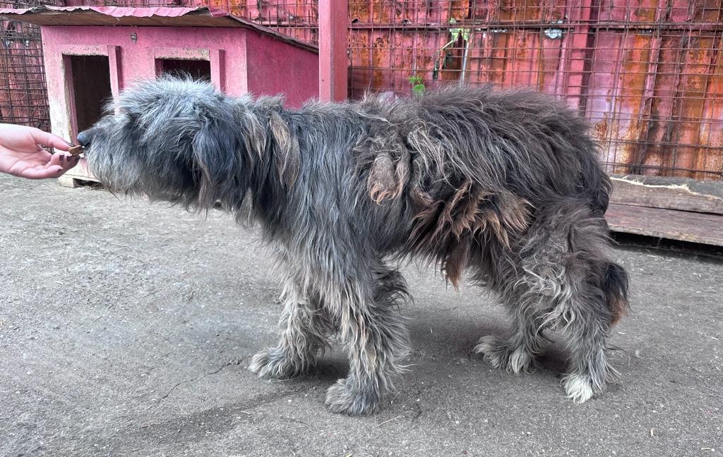 Sein Fell ist weiterhin total verfilzt und er wird sich sicherlich sehr unwohl in seiner Haut fühlen.