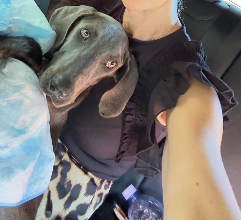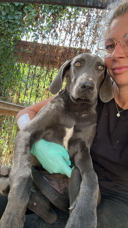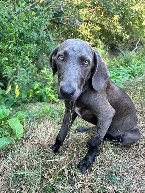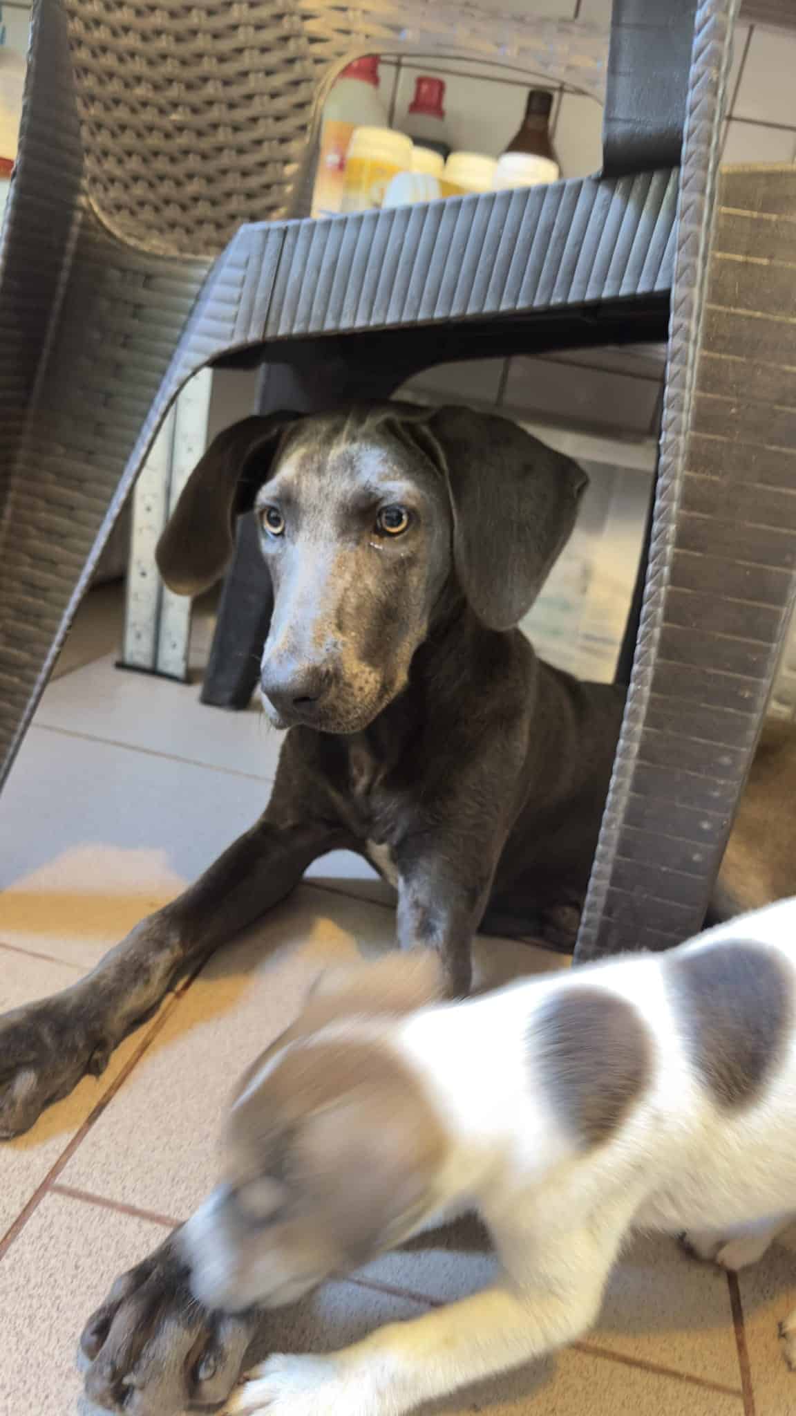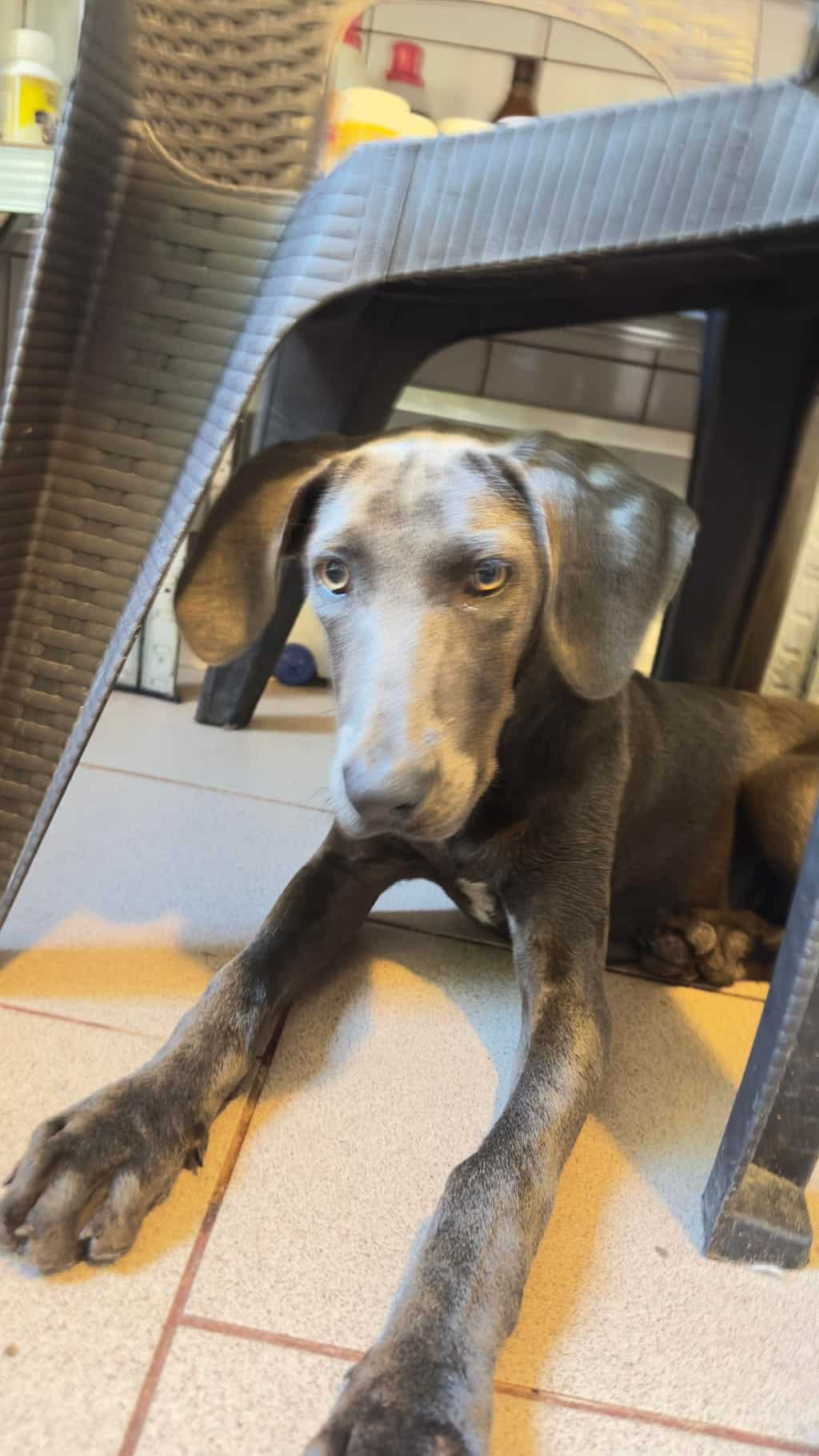 Größe: wird ca. groß-sehr groß (akt. ca. 40-45 cm groß Stand 08/24) vsl. Jagdhund Mix/ Weimaraner