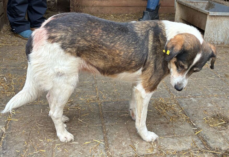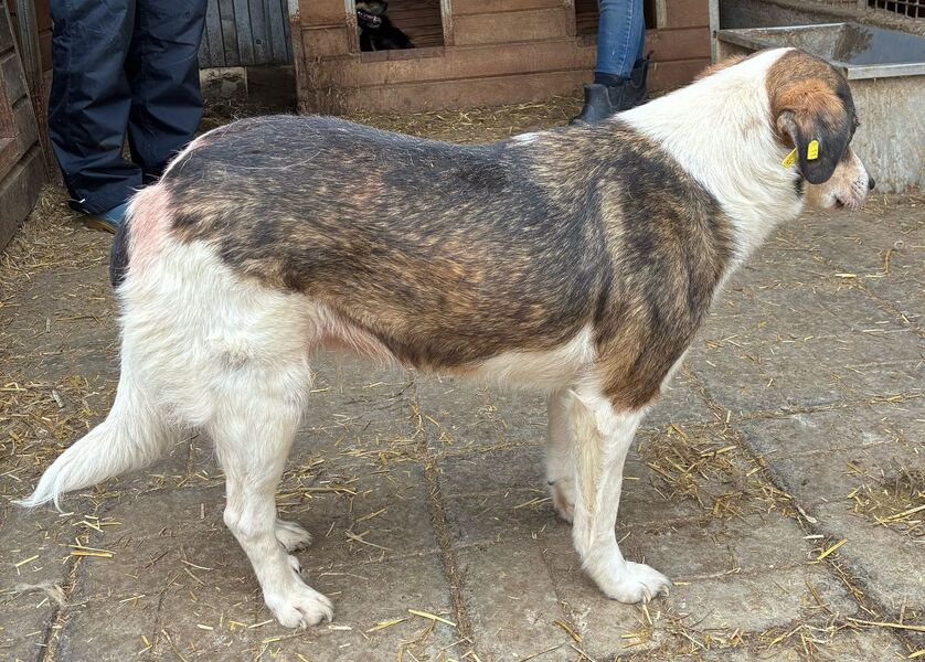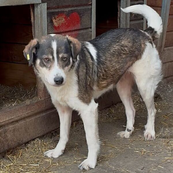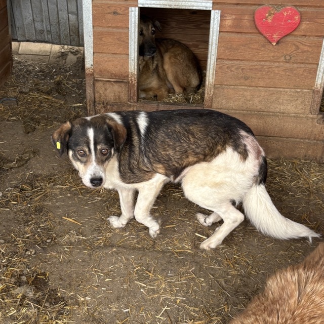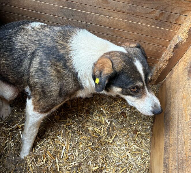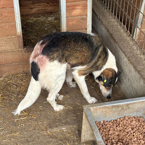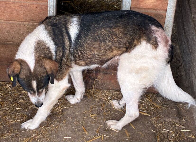 Dieser armen Hündin sahen wir bereits ihr Unbehagen an, als wir vor dem Kennel standen: Schneckchen kratzte sich beinahe durchgehend und die Spuren ihrer Hautprobleme sind bereits durch kahle und wunde Stellen sichtbar. Wir meldeten Schneckchen umgehend an die zuständige Tierärztin, sodass sie schnell behandelt werden kann. Neugierig beobachtete sie unser Tun im kennel und hielt sich stets in unserer Nähe, jedoch eher in zweiter Reihe auf. Ihre Unsicherheit Menschen gegenüber überspielte sie etwas durch niedliches hin und her springen und zeigte sich dabei sehr verträglich und spielerisch mit ihren Kennelgenossen. In ihrem Stress durch den Juckreiz haben wir Schneckchen nicht bedrängt und versucht sie anzufassen. Das Shelter ist leider der absolut falsche Ort, um zu heilen und zur Ruhe zu kommen und so wünschen wir dieser süßen Maus, dass sie schon bald von ihren Menschen gesehen wird. Für Schneckchen suchen wir einen liebevollen Platz bei erfahrenen Menschen, die sie behutsam an die Pfote nehmen und Schritt für Schritt ankommen und auftauen lassen. Ein freundlicher und aufgeschlossener Ersthund würde Schneckchen die Eingewöhnung sicher erleichtern.