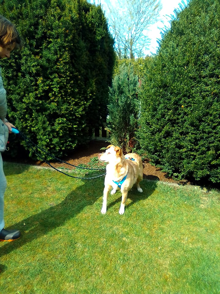 Die täglichen Spaziergänge liebt sie sehr. Auf Radfahrer, Jogger, Autos reagiert sie nicht. Im Haus verhält sie sich ruhig, macht nichts kaputt und ist stubenrein. Zusammen mit unseren Hunden bleibt sie ohne Probleme 2-3 Stunden alleine.