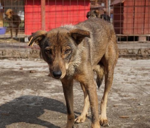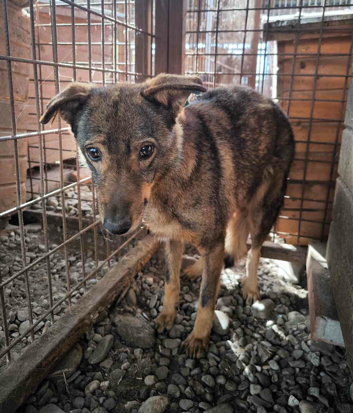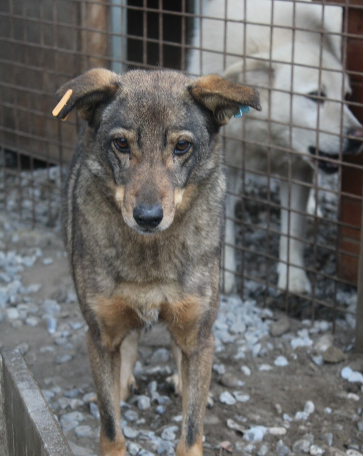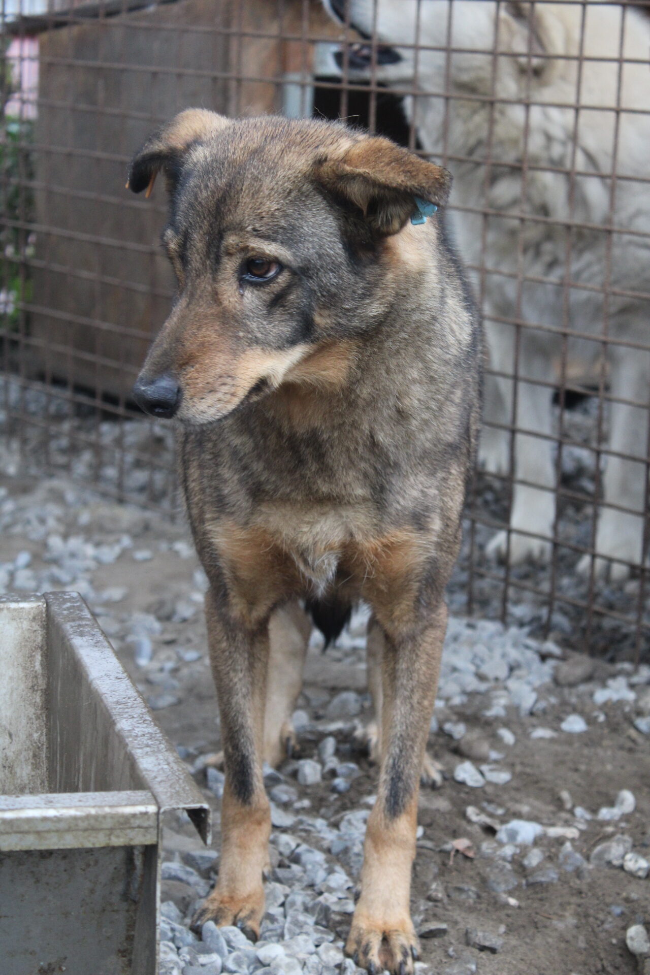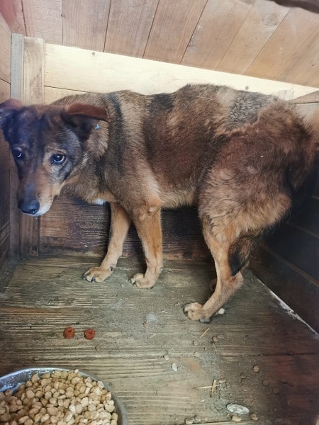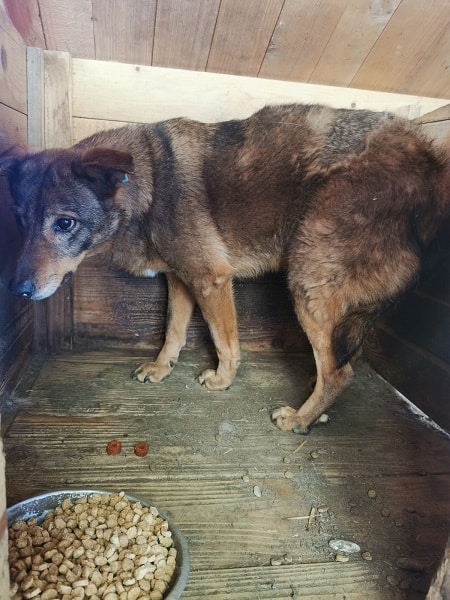 SEITANA versuchte, uns aus dem Weg zu gehen, als wir den Kennel betraten. Sie ist unsicher, wir konnten sie aber dennoch vorsichtig streicheln. Man merkt ihr an, dass sie menschliche Zuwendung nicht gewohnt ist.