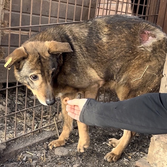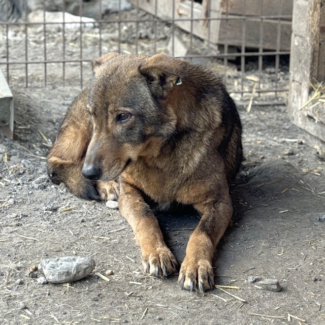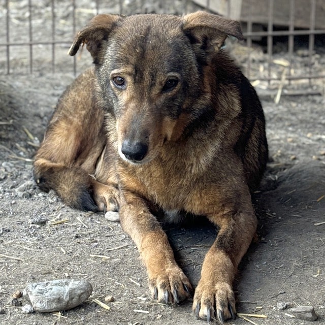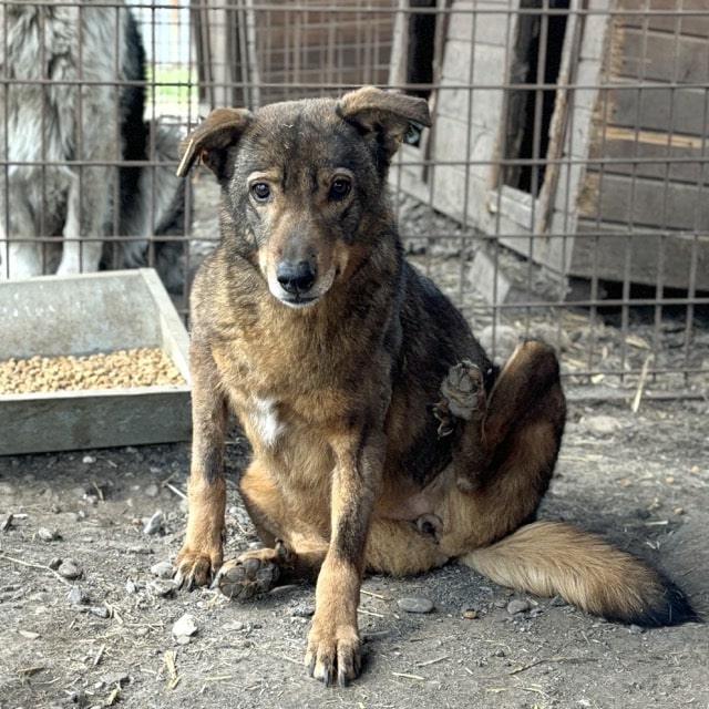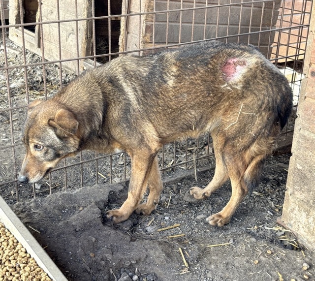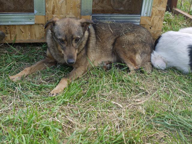 Die zarte SEITANA beobachtete uns bereits aufmerksam, während wir noch im Nachbarkennel zu tun hatten. Dabei lag sie ruhig mitten im Kennel. Als wir diesen betraten, zog sie es vor, einen selbst gewählten Sicherheitsabstand zu uns einzuhalten. Unsere mitgebrachten Leckerlie nahm sie lieber vom Boden als aus der Hand, jedoch fraß sie diese ruhig in unserer Anwesenheit. Ein kleiner Hoffnungsschimmer und Beweis, dass sie uns gerne vertrauen möchte… SEITANA litt bei unserem Besuch leider stellenweise an einem Hautpilz, der jedoch bereits behandelt wird. Für diese betagte Dame, die nun bereits den Großteil ihres Lebens hinter Gittern verbringen musste, wird es höchste Zeit, dass sich liebe und erfahrene Menschen finden, die sie an die Pfote nehmen und behutsam auf die Sonnenseite des Lebens führen. Eine ruhige Umgebung würde ihr sicher schon so viel Geborgenheit vermitteln, dass sie bald auftauen und mehr Nähe zulassen würde. Von einem souveränen Ersthund könnte sie sich abschauen, wie schön es sich mit uns Menschen lebt.