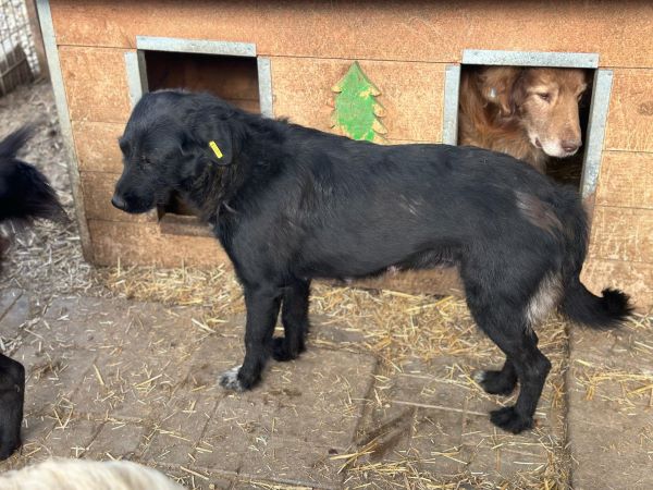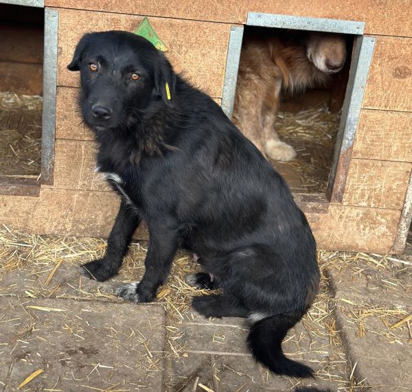 Diese hübsche, schwarze Hündin lebt in einem Kennel mit größeren Herdenschutzrüden zusammen. Sie zeigt sich dort sehr verträglich. In unsere unmittelbare Nähe traute sie sich nicht, sondern blieb ohne Panik immer etwas von uns entfernt stehen und liegen. Anfassen konnten wir sie nicht und aufgrund der Gruppenkonstellation arbeiteten wir in diesem Kennel ausschließlich ohne Leckerchen. Ob wir sie also für Leckerchen hätten begeistern können, wissen wir nicht. Aktuell ist davon auszugehen, dass sie einige Zeit an Eingewöhnungszeit benötigen würde, bis sie Vertrauen in den Menschen entwickelt hat. Ein Zweithund zur Orientierung wäre wichtig. Sie war wohl auch mal Mutter gewesen.