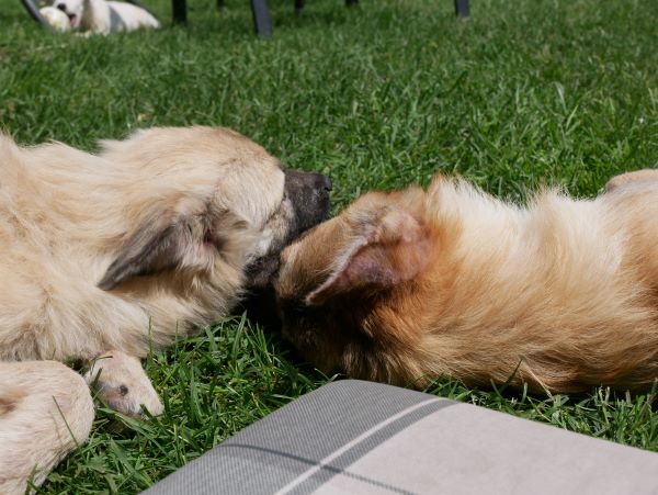 Gassigehen ist auch für Seraphina noch aufregend; doch welpentypisch folgt sie dem Rudel und vor allem dem PS-Frauchen; dann kann es nicht soo schlecht sein. Es wird mit jedem Tag lockerer, und auch Seraphina wird am Ende eine entspannte, tolle Begleiterin sein, die vermutlich auch gut abrufbar im Freilauf unterwegs sein wird. Die Fahrt im Auto zum Tierarzt hat sie verschlafen. Dass kleine und große Geschäfte nach draußen gehören, lernt sie gerade ebenfalls sehr erfolgreich. Den Home Office Test hat Seraphina auch bestanden; denke, es ist auch problemlos auf Office Office erweiterbar.