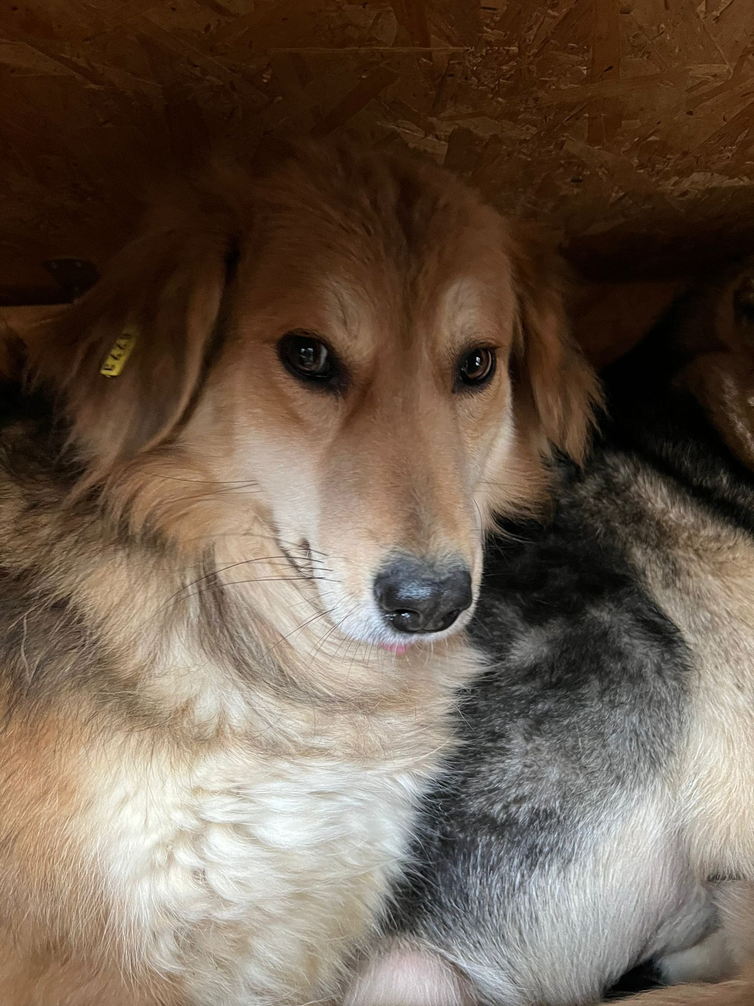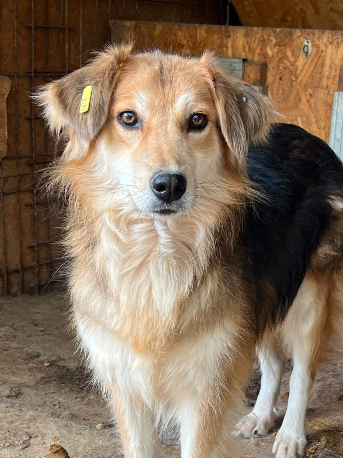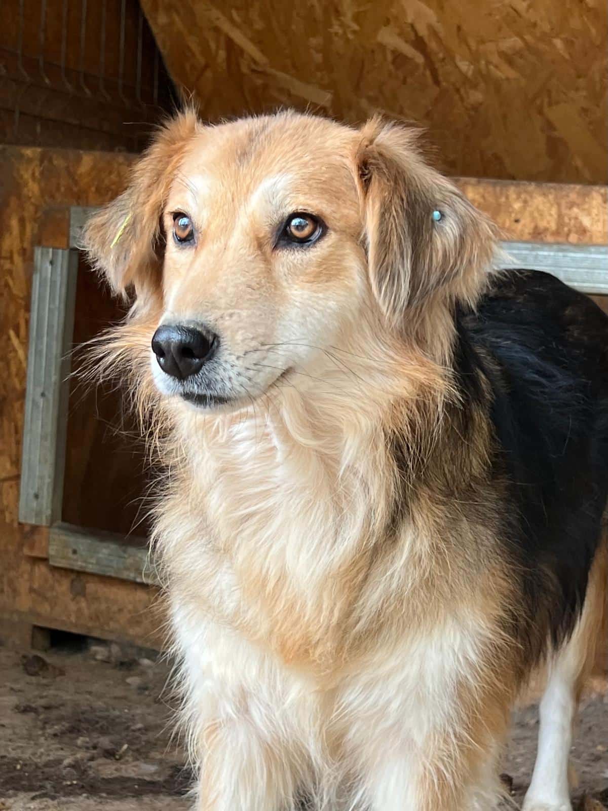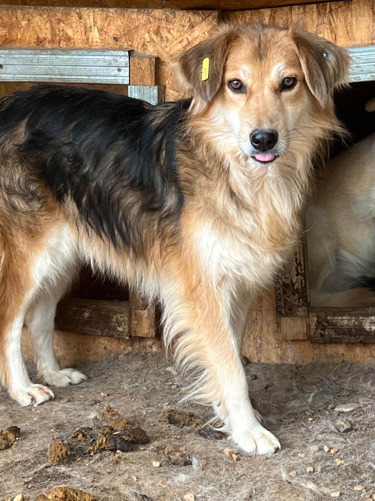 Die wunderschöne SHAKIRA mit ihrem seidigen Flauschefell zeigte sich bei unserem Besuch leider unsicher, jedoch auch etwas interessiert. Zu selten kommen Menschen vorbei, die mehr vorhaben, als nur Futter und Wasser zu bringen. Neugierig streckte sie ihr Köpfchen aus der Hütte, schnupperte am fotografierenden Telefon und nahm gern die mitgebrachten Leckerlie. Leider gab es die Zeit nicht her, dass wir uns ihr weiter behutsam zuwenden und sie berühren konnten. Wir wünschen uns sehr, dass SHAKIRA endlich die Chance erhält, ein glückliches Hundeleben zu führen. Ihre Menschen sollten viel Geduld und Erfahrung mitbringen und ihr den Raum geben den sie braucht, um in ihrem Tempo anzukommen und Vertrauen lernen zu können. In ihrem gemischten Rudel, welches leider ebenfalls aus sehr unsicheren Hunden besteht, zeigte die liebe Hündin sich durchgehend verträglich und würde in ihrem neuen Zuhause sehr von einem souveränen Ersthund profitieren, an dem sie sich orientieren kann. Ihre Neugier und Vorliebe für Leckereien werden ihr die Eingewöhnung ebenfalls erleichtern.