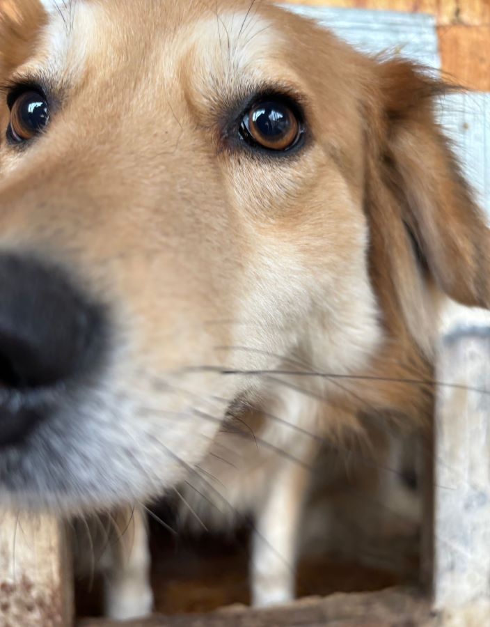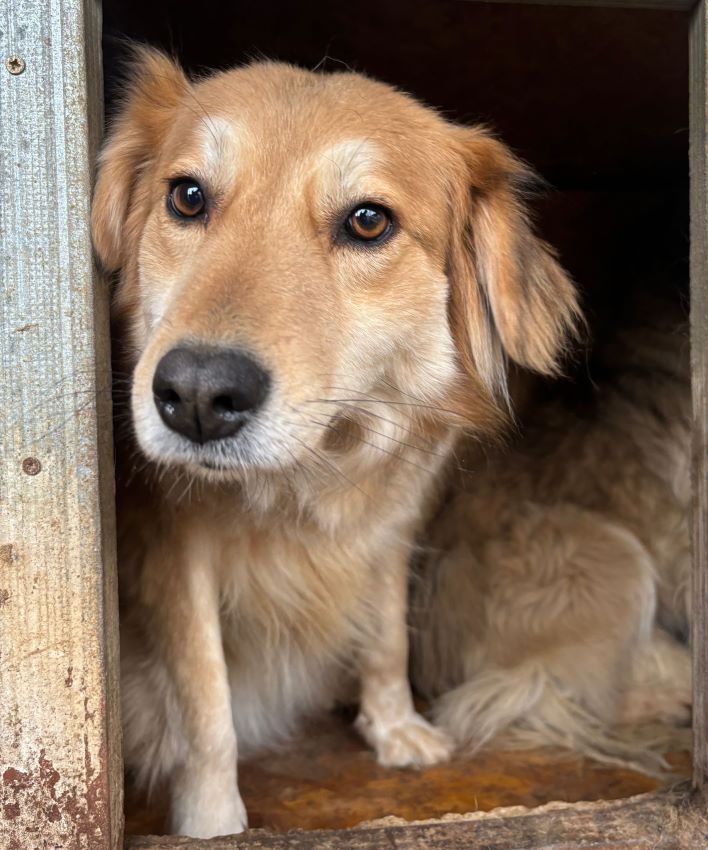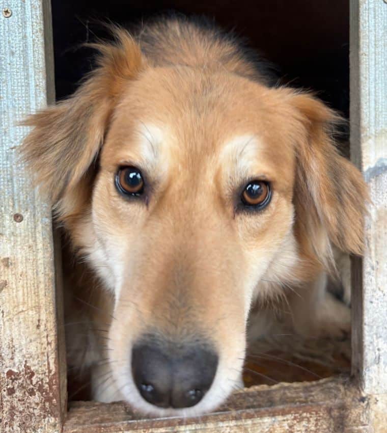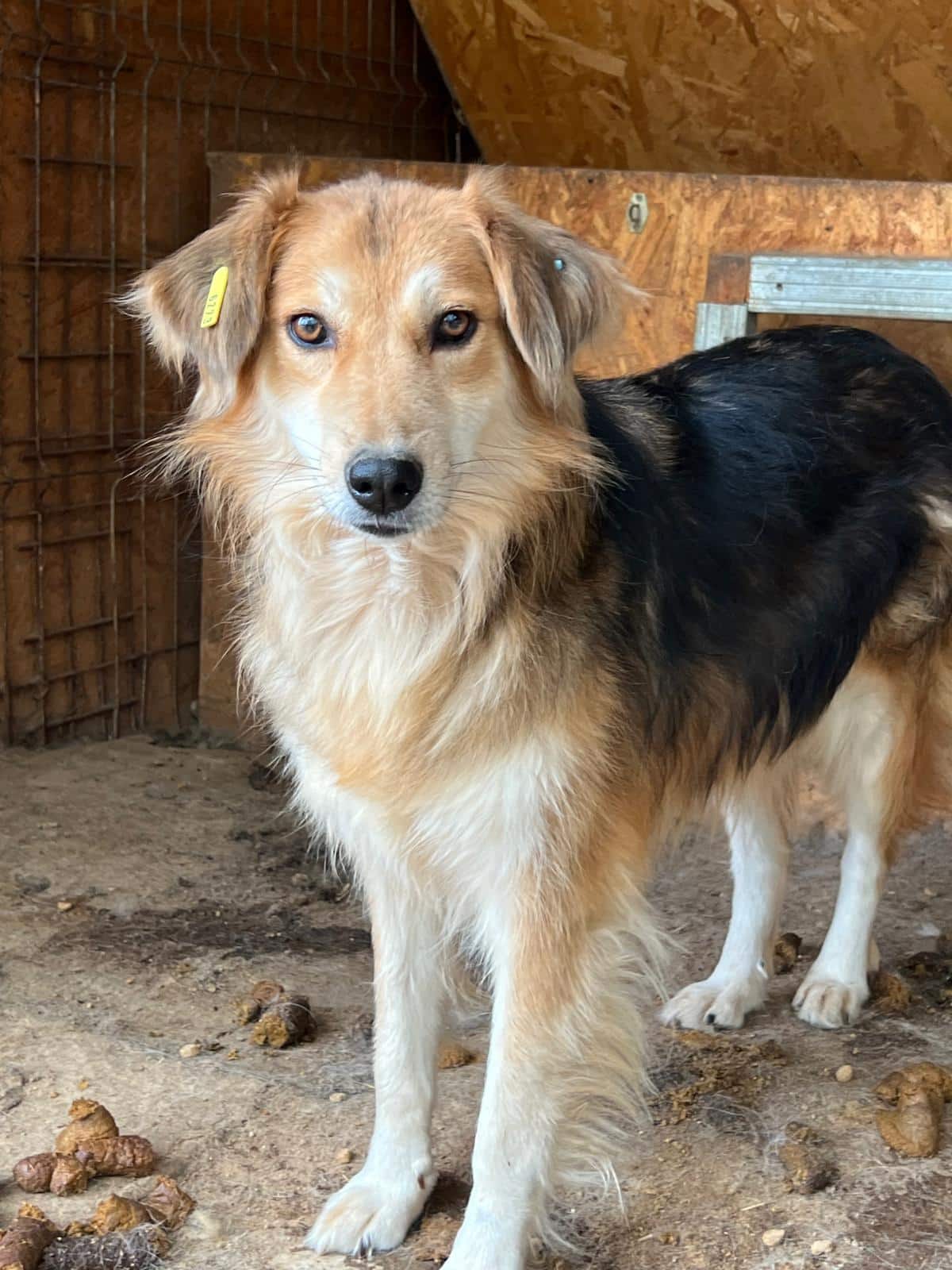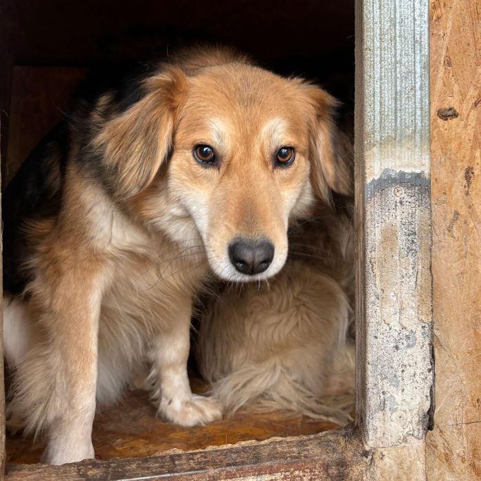 Die wunderschöne SHAKIRA mit ihrem seidigen Flauschefell zeigte sich bei unserem Besuch leider unsicher, jedoch auch etwas interessiert. Zu selten kommen Menschen vorbei, die mehr vorhaben, als nur Futter und Wasser zu bringen. Neugierig streckte sie ihr Köpfchen aus der Hütte, schnupperte am fotografierenden Telefon und nahm gern die mitgebrachten Leckerlie. Leider gab es die Zeit nicht her, dass wir uns ihr weiter behutsam zuwenden und sie berühren konnten. Wir wünschen uns sehr, dass SHAKIRA endlich die Chance erhält, ein glückliches Hundeleben zu führen. Ihre Menschen sollten viel Geduld und Erfahrung mitbringen und ihr den Raum geben den sie braucht, um in ihrem Tempo anzukommen und Vertrauen lernen zu können. In ihrem gemischten Rudel, welches leider ebenfalls aus sehr unsicheren Hunden besteht, zeigte die liebe Hündin sich durchgehend verträglich und würde in ihrem neuen Zuhause sehr von einem souveränen Ersthund profitieren, an dem sie sich orientieren kann. Ihre Neugier und Vorliebe für Leckereien werden ihr die Eingewöhnung ebenfalls erleichtern.