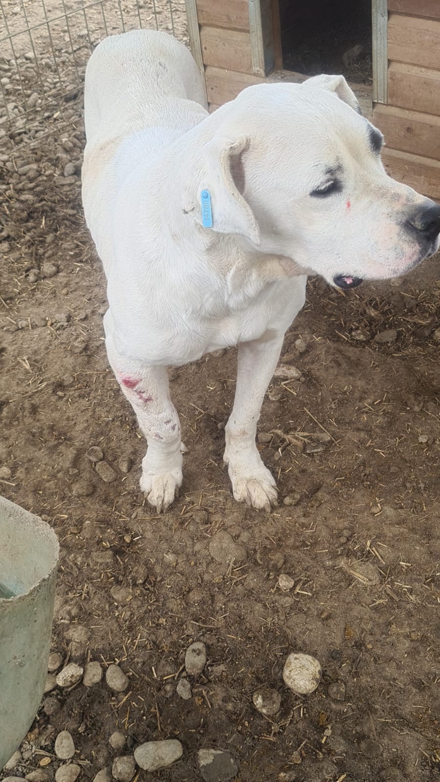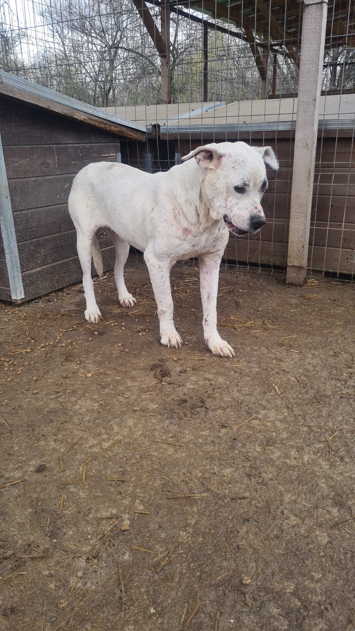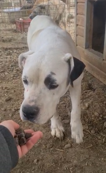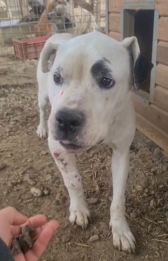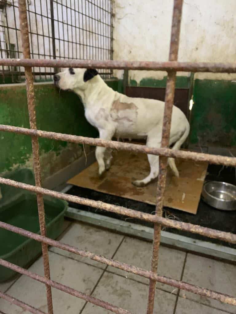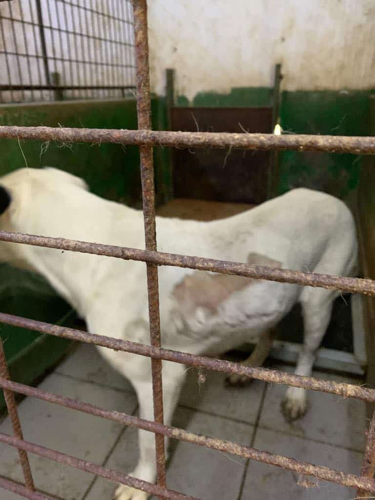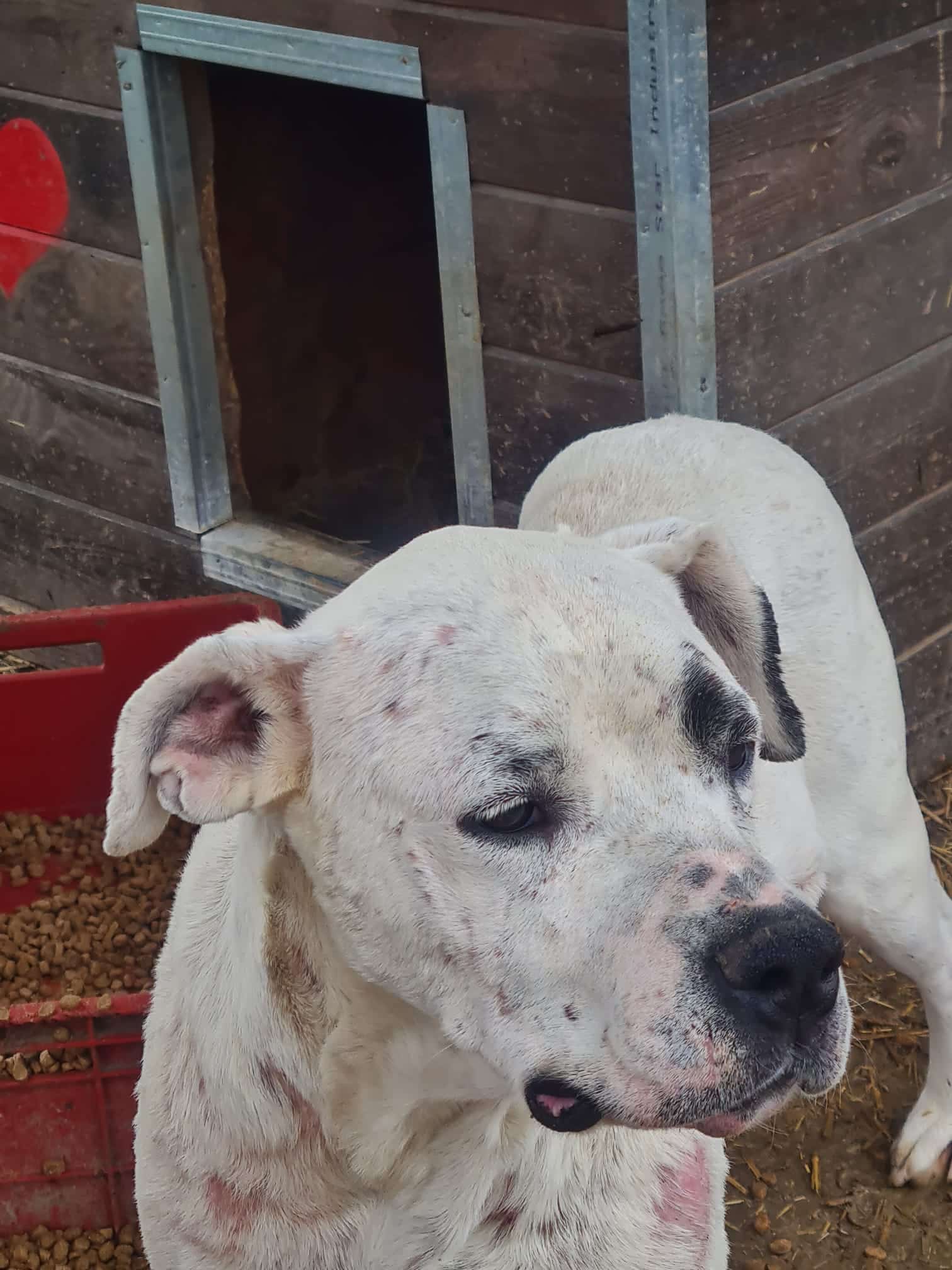 SHANAYA ist aus dem Vetkennel ausgezogen und lebt allein in einem Außenkennel, weshalb wir nichts zu ihrer Verträglichkeit sagen können. Am Kennelgitter verhält sie sich gegenüber anderen Hunden ruhig und ignoriert sie. Sie lässt sich am Kopf streicheln und nimmt gerne Leckerlie aus der Hand. Die Wunde des Tumors an den Rippen ist gut verheilt und eine Narbe bleibt. Leider hat sie weiterhin Probleme mit ihrer Haut.