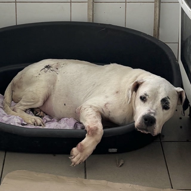 Der Tumor an der Seite wurde chirurgisch entfernt und SHANAYA sitzt aktuell im Vetkennel.