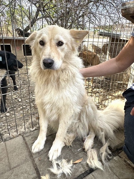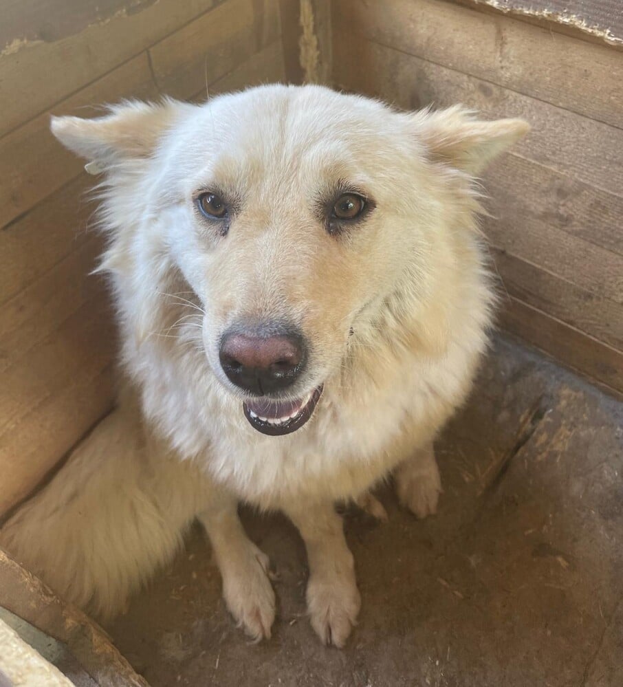 Die ca. 4 jährige Hündin ist ein wahrer Rohdiamant. Sie lebt in einem großen gemischten Rudel ohne Probleme. Shanice ist ruhig, zutraulich und einfach nur nett. Ihr weiches, seidiges Fell, welches leider an einigen Stellen verfilzt war, ließ sie sich brav entfernen. Die zurückhaltende Shanice ist ein Schatz auf 4 Pfoten. Alle anderen Hunde waren aktiver als sie, weswegen sie sich in ihre Hütte verkroch, um Ruhe zu finden. Wer eine ruhige, kniehohe Begleiterin sucht, liegt mit Shanice genau richtig.
