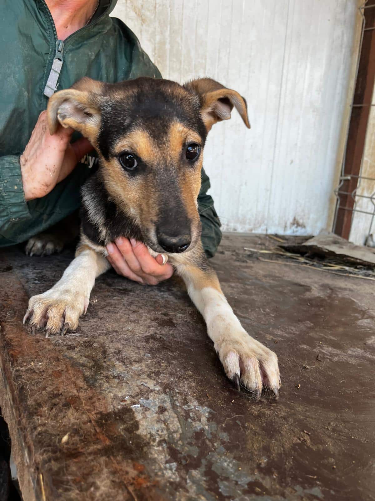 Es war abzusehen: SHANNON hat sich leider noch unsicherer entwickelt. Während unserer Anwesenheit lag sie nur in einer Hütte und wich bei Annäherung sofort zurück. Man kann sie noch hochnehmen und überall anfassen, ohne dass sie sich wehren würde, doch das wird nicht ewig so bleiben und das noch so junge Mädel bräuchte nun wirklich dringend einen erfahrenen Platz mit nettem Ersthund/Rudel, um nicht als scheuer Langzeitinsasse zu enden!