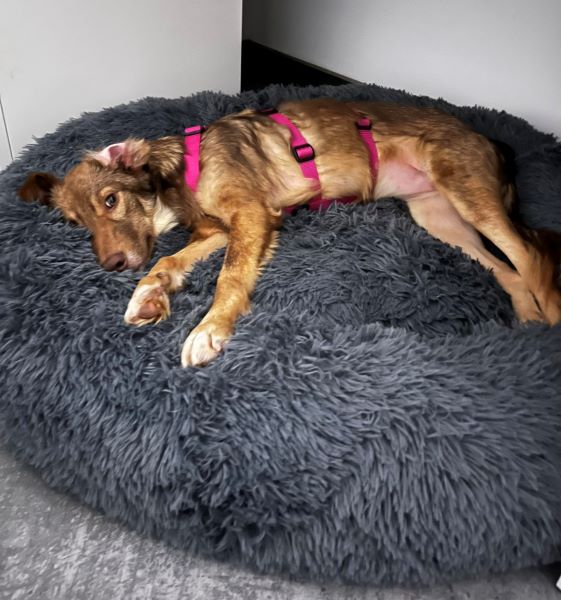 SHEA eine junge Schönheit, lebt seit Anfang Dezember 2023 auf ihrer Pflegestelle in 15306 Seelow mit Rüden und Hündinnen zusammen und findet alle toll. Shea ist sehr devot und geht jeglichen Ärger oder Stress aus dem Weg. Ihr Wesen ist sehr zart und sie braucht ein kleinen Moment zum auftauen aber das Kuscheln und mit im Bett schlafen findet sie grandios.