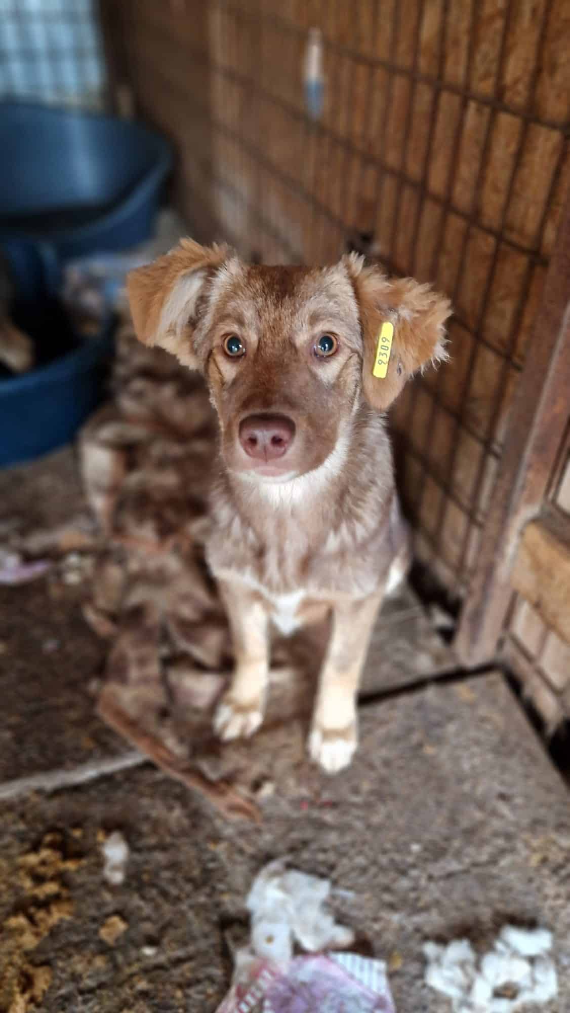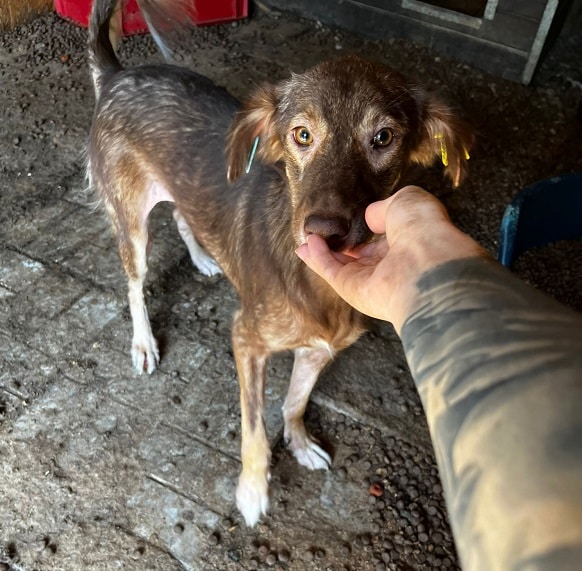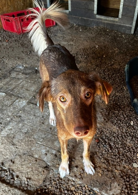 unter Bedrängnis wird sie unsicher, man merkt der jungen Hündin an, dass sie ohne Kontakt zu Menschen aufwachsen musste
