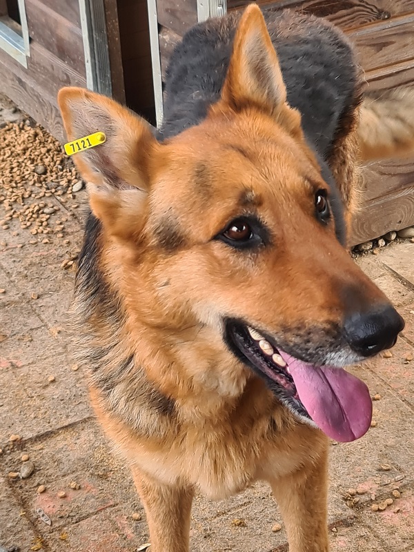SHEEVA ist eine menschenbezogene, zutrauliche und verschmuste Schäfi Hündin. Ihr ausgelaugtes Gesäuge lässt vermuten, dass sich sicherlich mal eine Zuchthündin war.