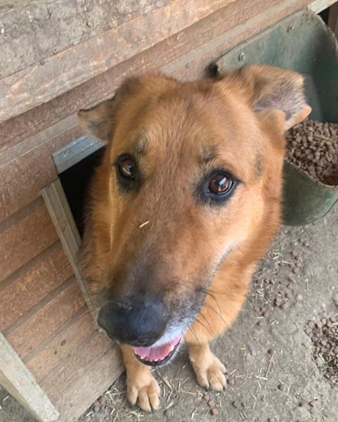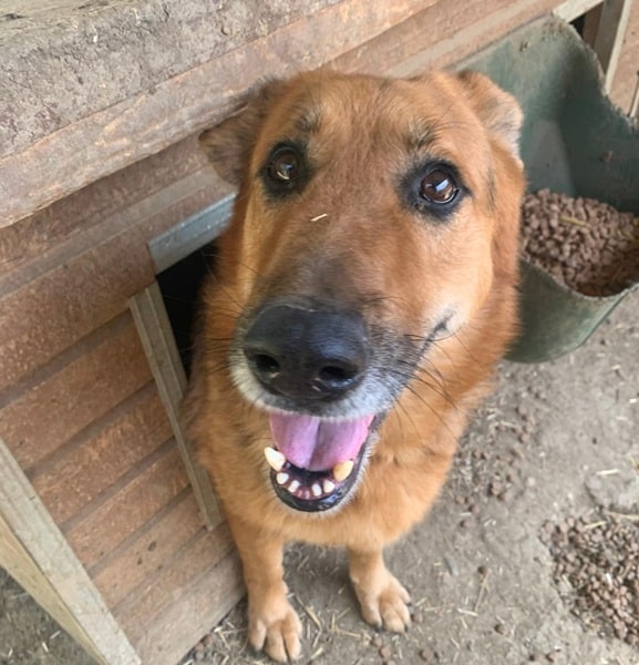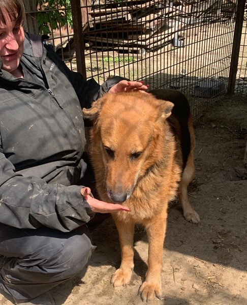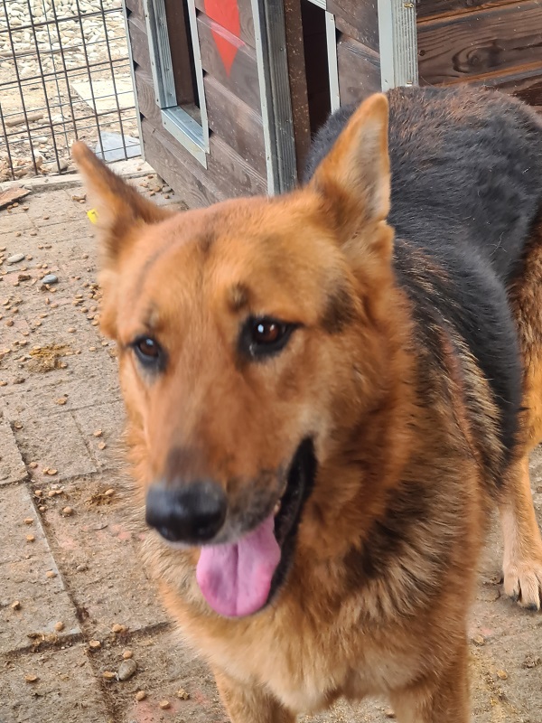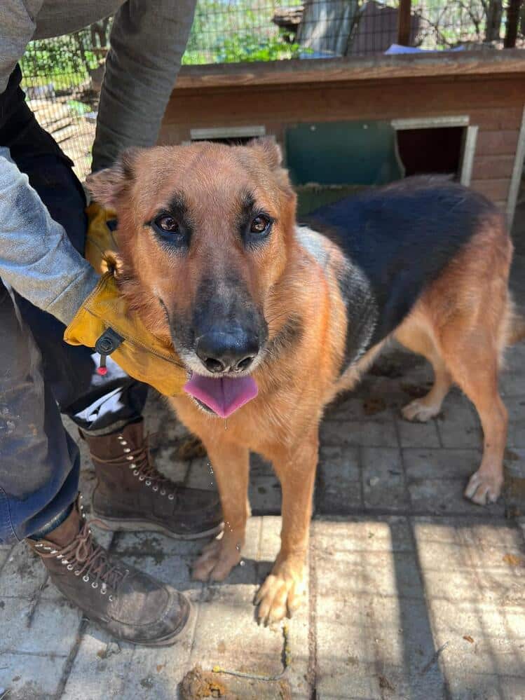 Die süße Sheeva teilt sich den Kennel mittlerweile mit einer anderen Schäferhundhündin, von der sie ziemlich im Zaum gehalten wird. Sheeva ließ sich von uns streicheln und genoss es sehr, endlich menschlichen Kontakt und Streicheleinheiten zu bekommen. Sie hat sich sehr über unseren Besuch gefreut, traute sich aber nur kurz aus der Hütte, um weiteren Ärger mit der zweiten Hündin zu umgehen.