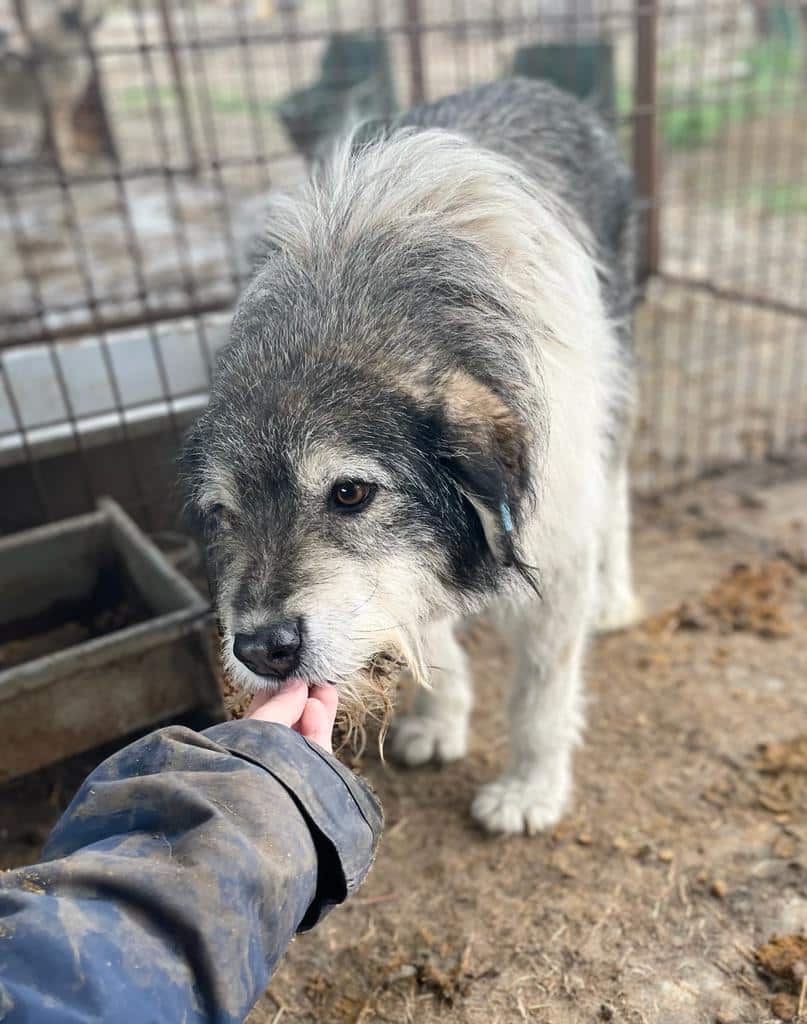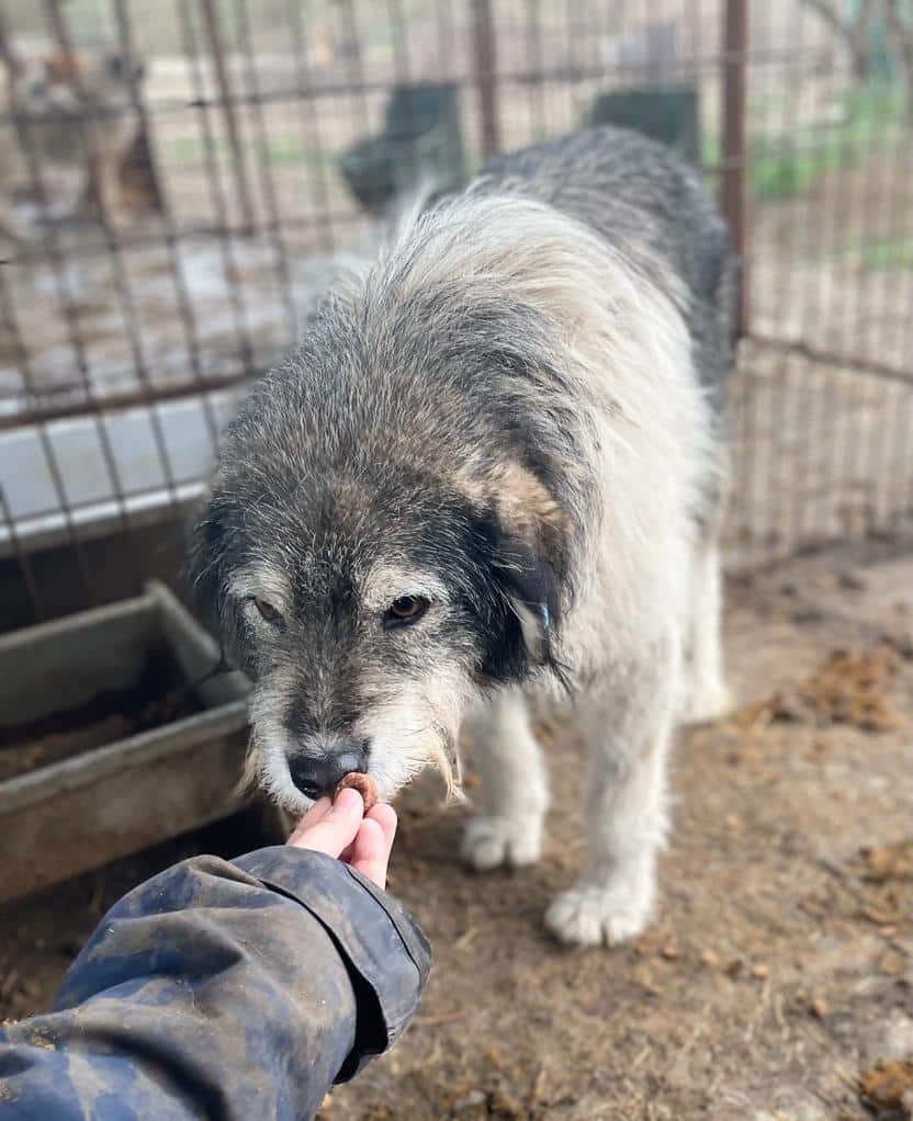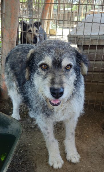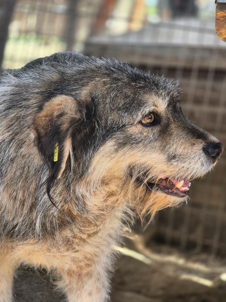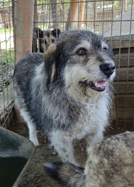 SHELLA nahm die Leckerchen in der Hütte gerne an, ließ sich dort auch an der Schnauze berühren und die Ohrmarken auslesen. Einen Chip hat sie nicht. Ein netter Kennel in dem die Hunde sich gegenseitig in Ruhe lassen, keinen Futterneid zu haben scheinen. In einer ruhigen Umgebung könnten wir uns den hübschen Struwwel gut als gemächlichen „ich bin einfach bei Dir“ Hund vorstellen.