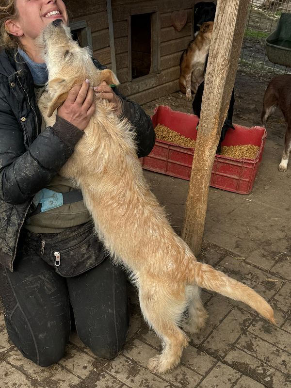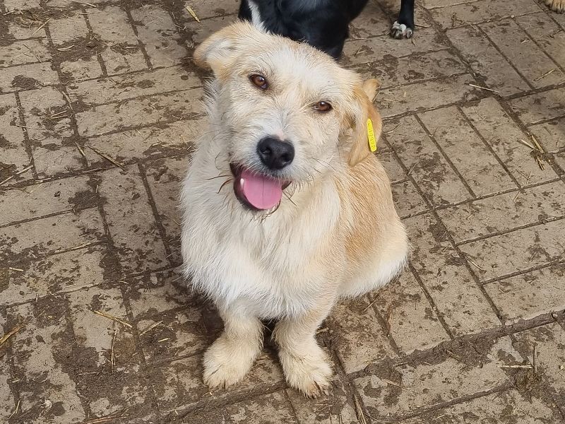 Der kleine, hellbraune Drahthaarrüde kennt Menschen jedoch sehr gut und hat uns überaus freudig im Zwinger begrüßt. Er ist total aufgeschlossen und hüpfte immer wieder an uns hoch, um gestreichelt zu werden. Es schien, als hätte er noch nicht verstanden, was ihn eigentlich für ein trauriges Schicksal im großen Tierheim erwartet. Zum Glück ist er uns schnell aufgefallen, sodass er die Chance hat nicht allzu lange in dieser hoffnungslosen Umgebung bleiben zu müssen. Er wird ein toller Familienhund, der trotz seiner nur 34cm Schulterhöhe, ein aktiver und verspielter Begleiter ist. Er war sehr aufgeregt, dass wir da waren und wurde dadurch zeitweise, etwas eifersüchtig, wenn wir uns seinen Mitbewohnern zuwandten.