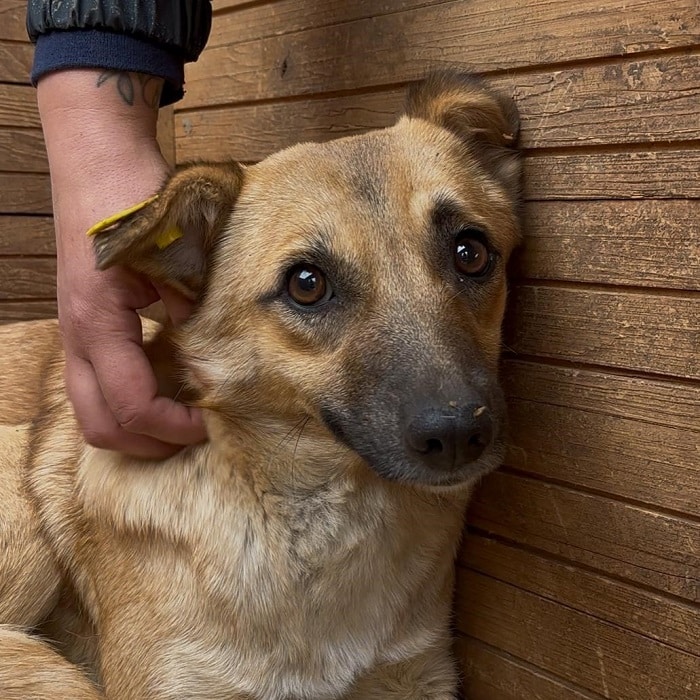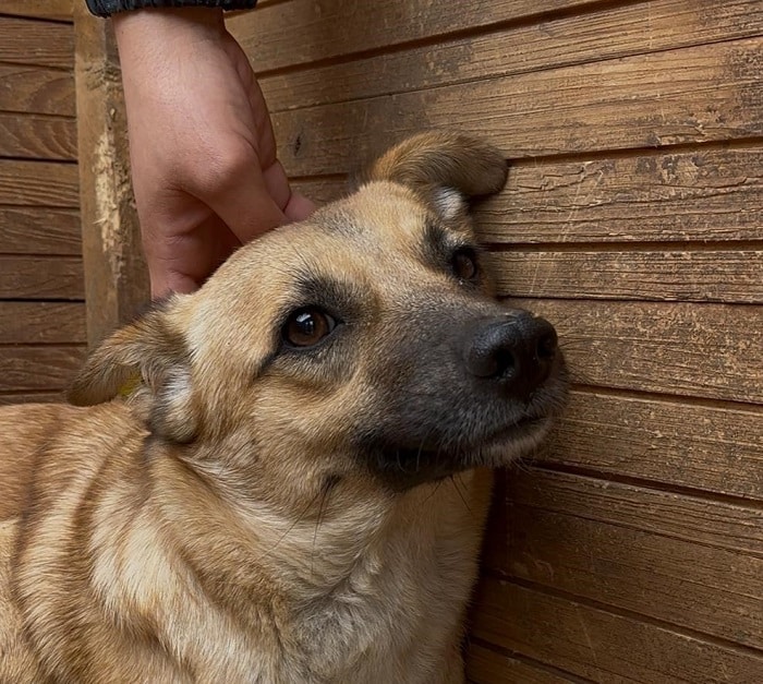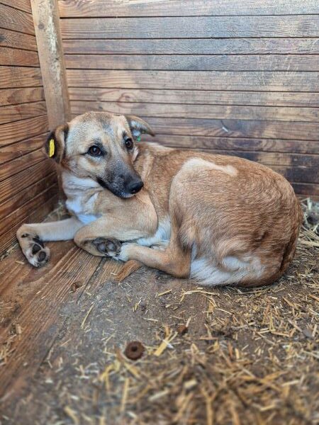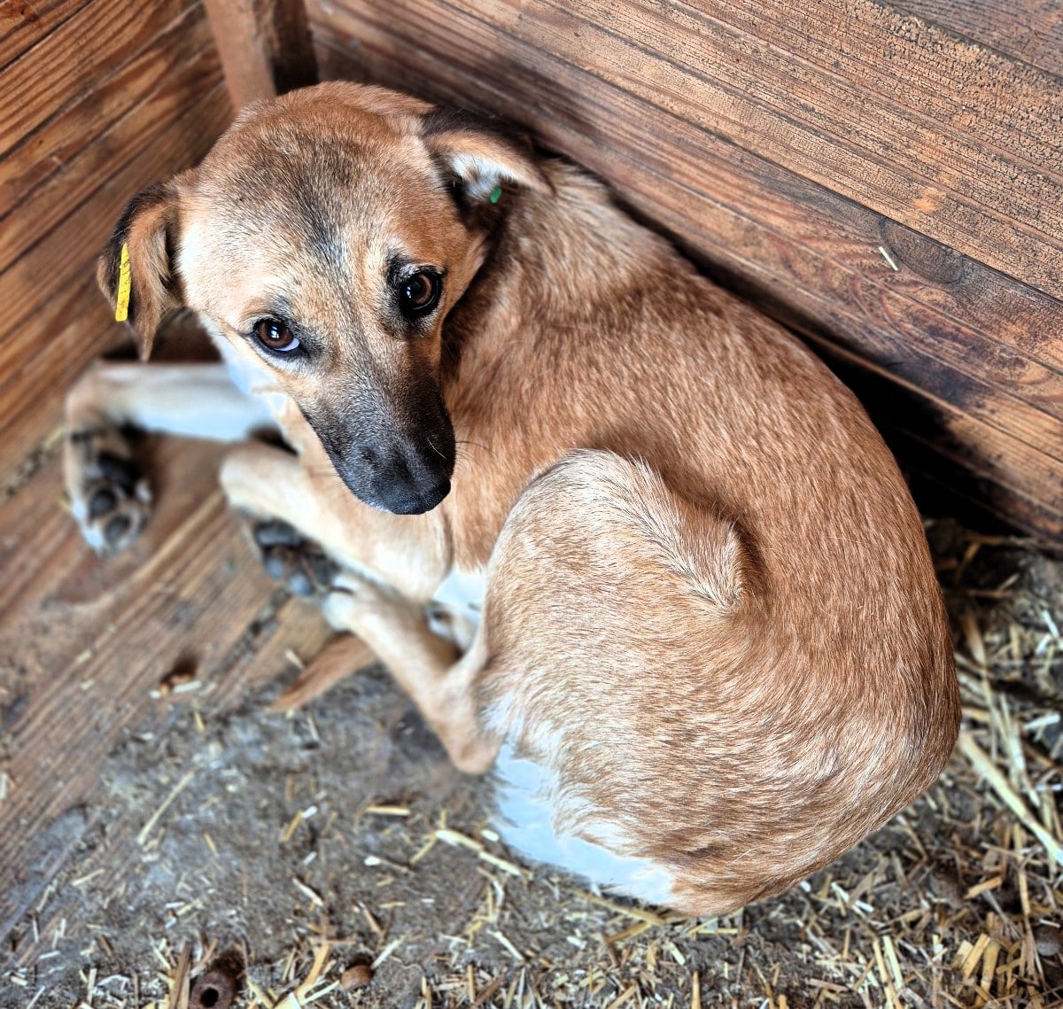 Sheyla ist nach wie vor sehr beeindruckt von dem Shelterstress und lag während unserer Besuche in der Hütte. Wir konnten sie dort gut streicheln und nach einigen Momenten konnte sie dies auch genießen und wäre am liebsten eingeschlafen. Die junge, sehr zarte Hündin sollte möglichst schnell das Shelter verlassen. Sie schien im Kennel sehr verträglich zu sein, denn sie lag immer mal mit einem anderen Hund zusammen in der Hütte.
