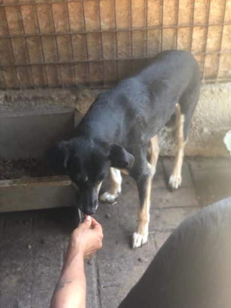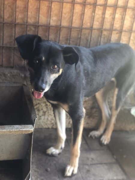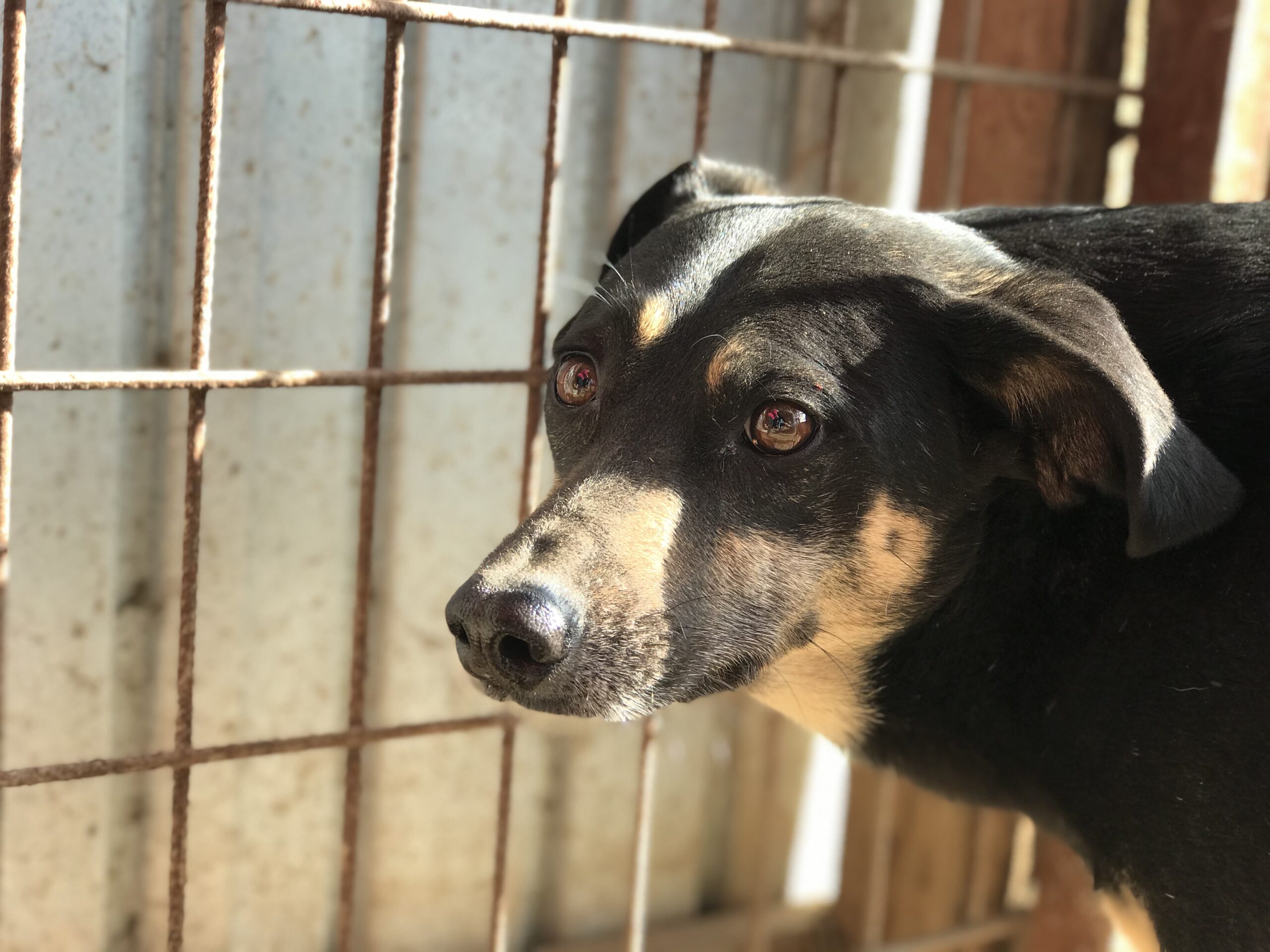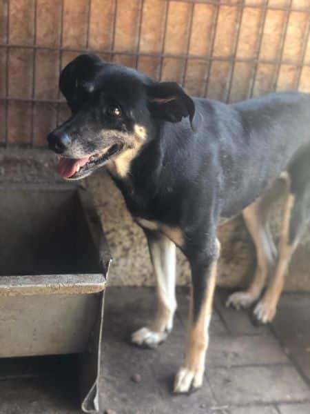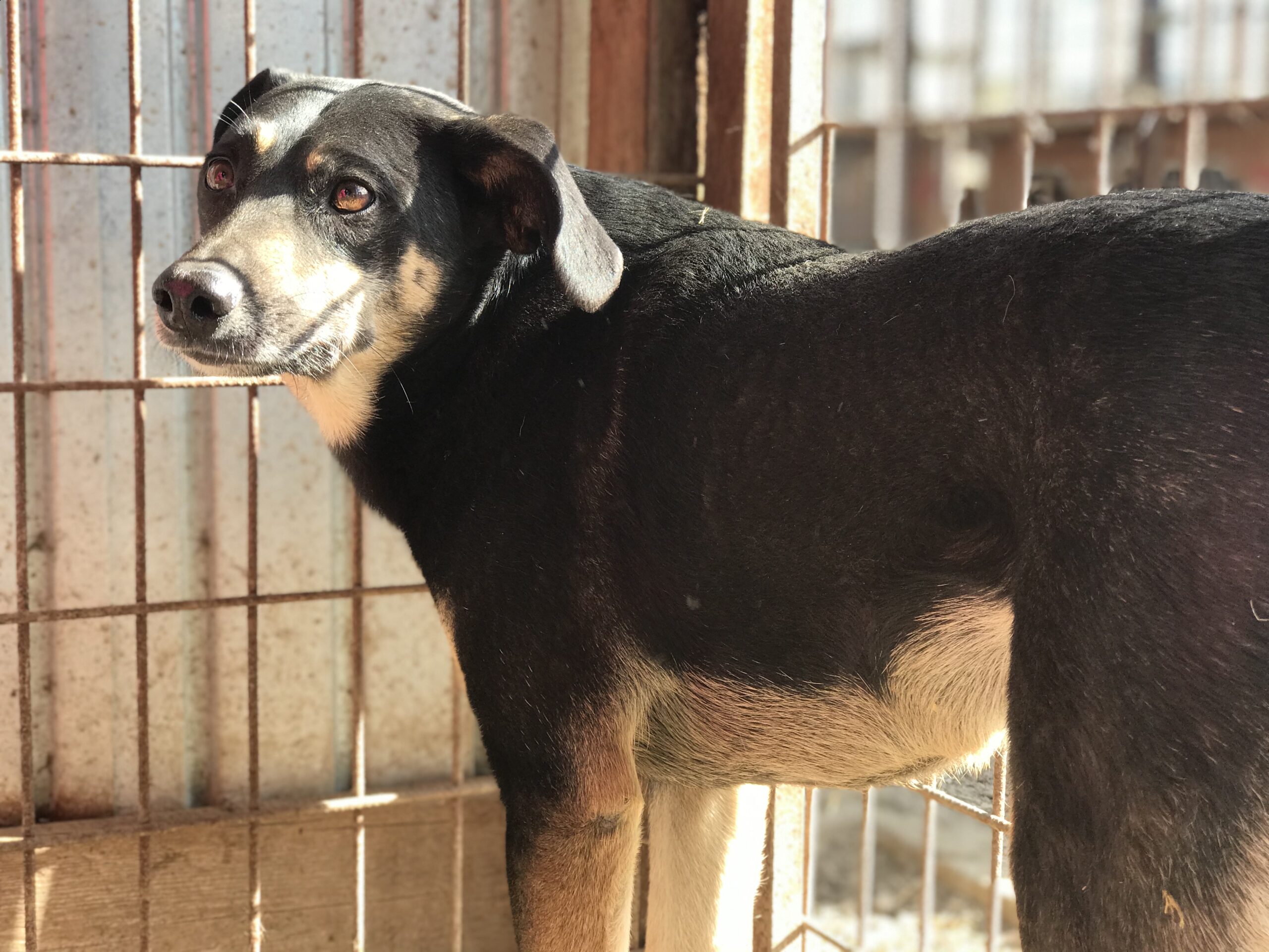 Shiraa sitzt mittlerweile mit zwei anderen Hunden in einem der sehr kleinen Kennel. Sie zeigte sich weiterhin etwas scheu. Leckerchen nahm sie schnell aus der Hand, wich dann bei vorsichtigen Berührungen zurück (ohne zu schnappen). Mit viel Hundeerfahrung würde man sie zutraulicher bekommen. Verträglich ist sie.