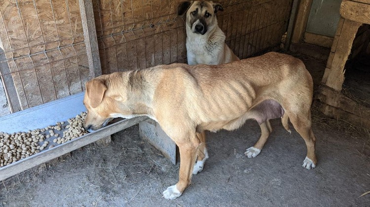 SHIRIN war an der Kette und man hatte wohl vergessen, dass man dann mal ab und an nach dem Hund schauen sollte. Sie war bis auf die Knochen abgemagert.