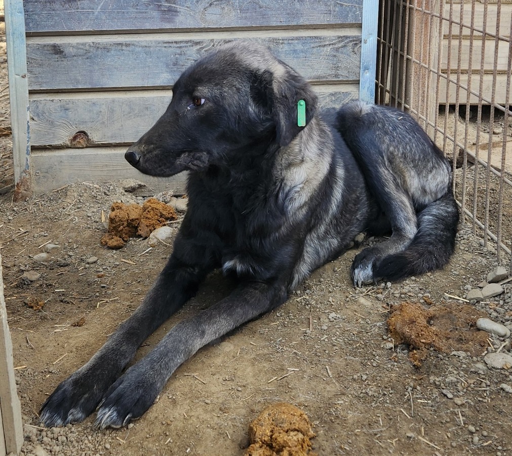 Die anfänglich zurückhaltende Hündin SHIVAYA wich zu Beginn unseres Besuchs aus und suchte Schutz hinter der Hütte. Nach einem kurzen Moment konnten wir SHIVAYA jedoch überzeugen, die Leckerchen anzunehmen und sie sogar zu streicheln. Das tolle Mädchen besticht durch ihre Ruhe, Ausgeglichenheit und ihre besonders sanfte, feine Art.