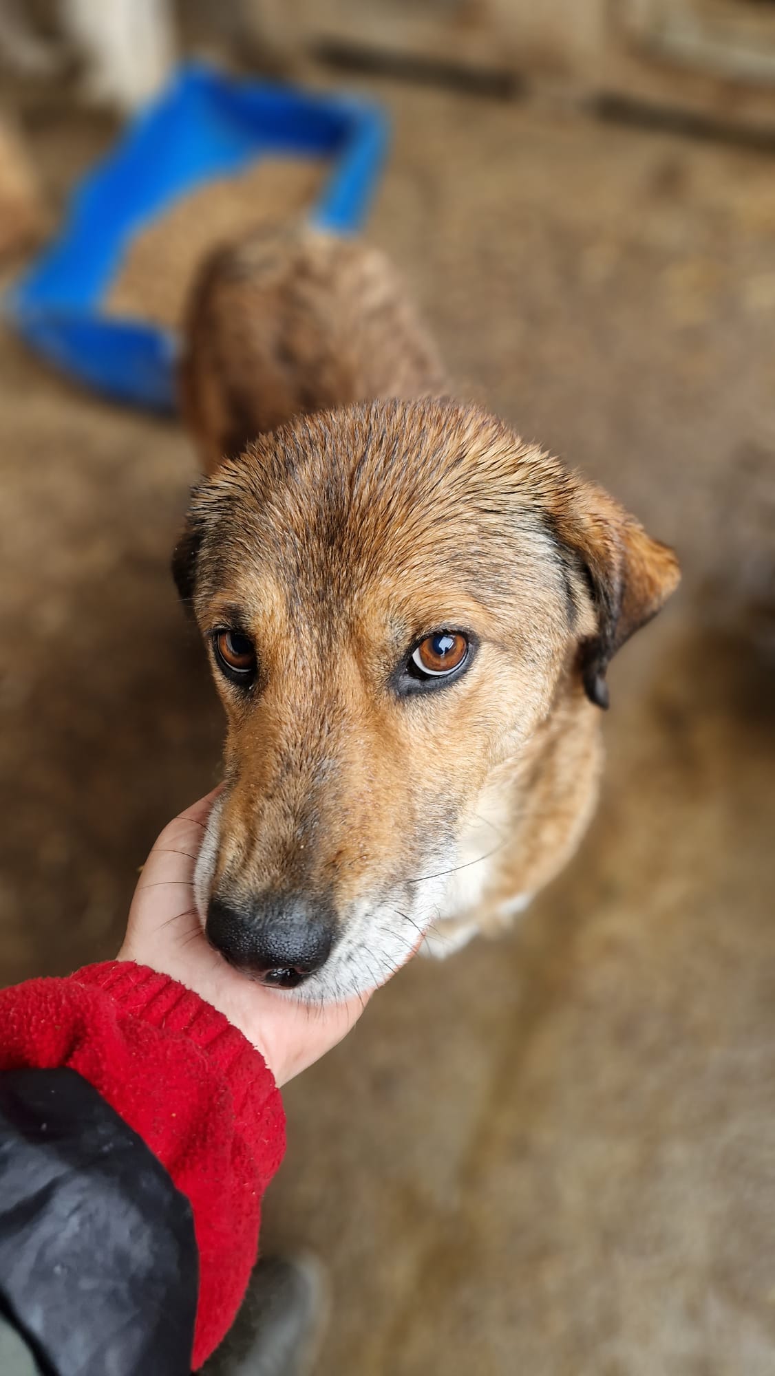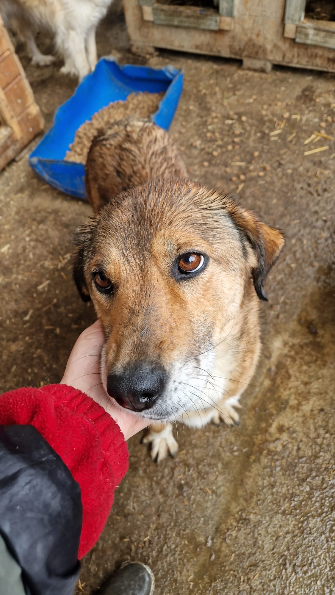 Sie sitzt mit ängstlichen Hunden zusammen. Daher konnten wir keine Interaktionen mit anderen Hunden beobachten. Wir denken aber, dass sie verträglich ist.