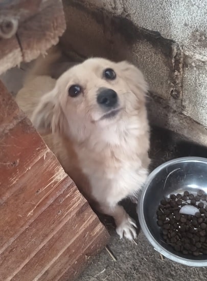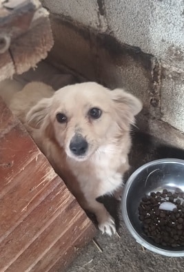 eine sehr liebe kleine Hündin, die im Shelter völlig überfordert ist -> sie versteckt sich nur hinter der Hütte, obwohl ihr die anderen im Zwinger nichts tun, der Lärm und Stress ist ihr aber zuviel