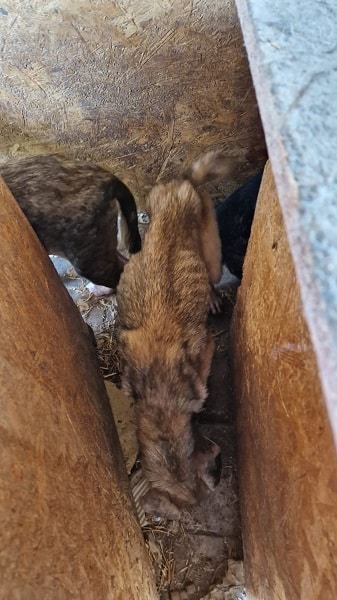 Die zarte junge SILICIA versteckte sich bei unserem Besuch hinter einer Hütte. Sie kommt in ihrem Kennel nicht zurecht, auch ans Futter kommt sie nicht gut. Inzwischen wurde eine sehr dominante und kontrollierende Hündin aus diesem Kennel genommen, dennoch sollte SILICIA schnellstmöglich ausreisen, denn mit ihrer devoten Art kann sie sich einfach nicht durchsetzen.