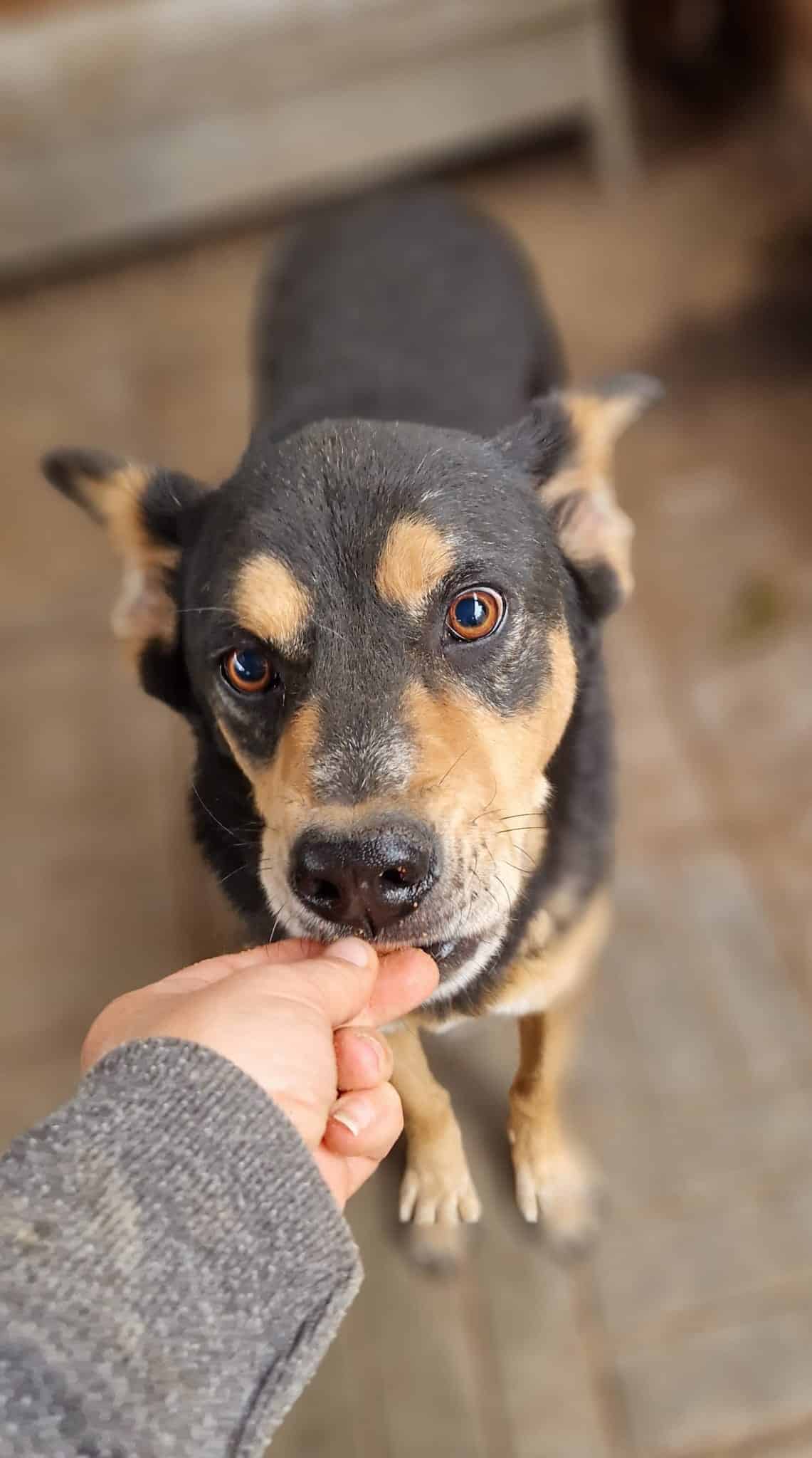 Der hübsche SILVAN mit den tollen Teddy-Ohren hat vermutlich mit dem Menschen noch nicht viel Gutes kennengelernt. Er kommt aber bereits, schnuppert an der Hand und schaut immer wieder neugierig, was wir machen. Auch lässt er sich inzwischen anfassen, wenn man ihm nur genug Zeit lässt