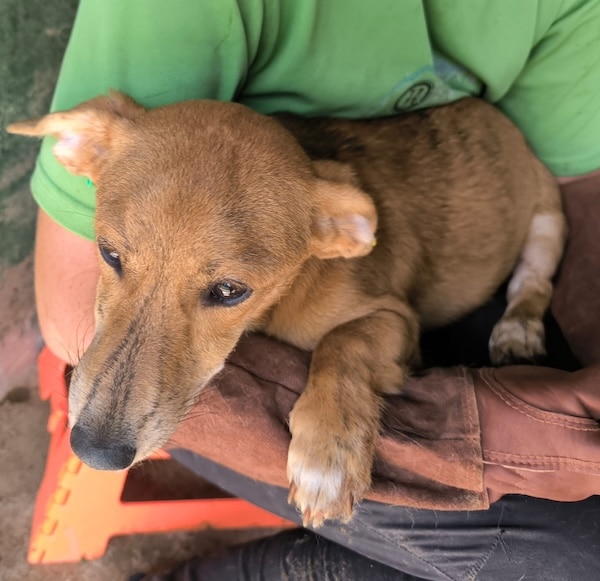 Als wir den Kennel betraten, hielt SILVINA sich im Hintergrund. Sie suchte aktiv keinen Kontakt zu uns. Wir konnten sie unter leichter Bedrängung problemlos überall anfassen und sogar auf den Schoß nehmen.