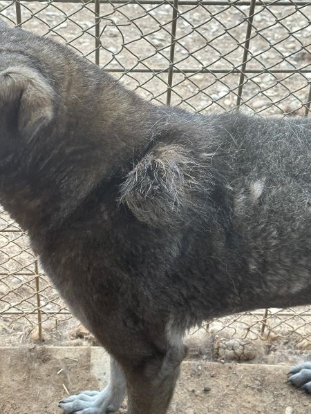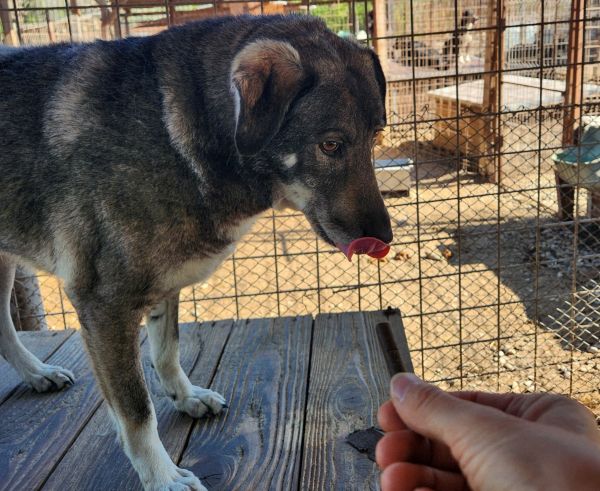 SIMON sieht man den Stress im Shelter deutlich an, er scheint um Jahre gealtert zu sein. Er ist verständlicher weise weiterhin zurückhaltend und beobachtete uns anfangs vom Hüttendach aus. SIMON zeigt sich aber trotzdem neugierig und interessiert, jedoch fehlt noch der Mut sich Leckerlies von uns zu nehmen und sich streicheln zu lassen. SIMON sollte zu geduldigen Menschen, wo er in Ruhe ankommen und Vertrauen fassen darf. Er hat eine Beule an der Seite, was bereits der Tierärztin zur Abklärung gemeldet wurde.