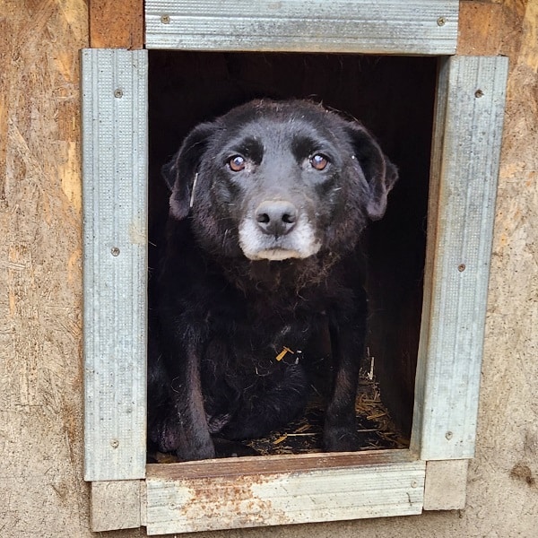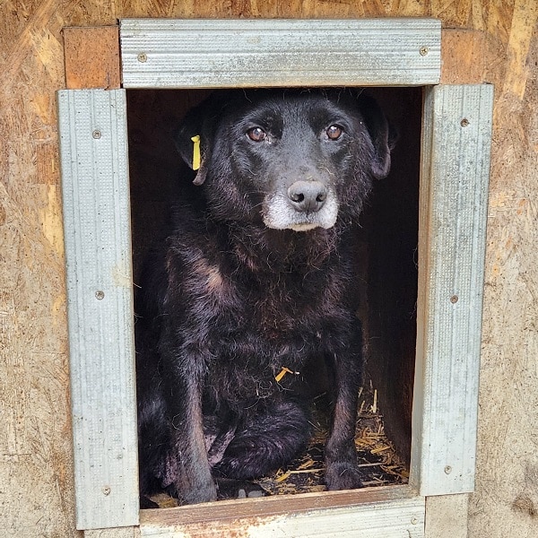 Als wir ihren Kennel besuchten hielt sie sich zwar lieber in der Hütte auf, nahm die mitgebrachten Leckerchen aber dankend an.