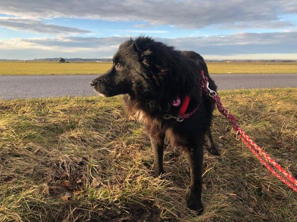 Sinclair liebt seine Menschen und von ihnen gestreichelt zu werden. Auch spazieren gehen findet er richtig klasse. Wenn er die Leine sieht, weiß er schon was kommt und freut sich riesig. Er geht selbstständig die Treppen hoch und runter. Draußen zeigt er keine Unsicherheiten und marschiert ziemlich souverän überall hin mit. Beim Gassi gehen orientiert er sich immer wieder an seinem Pflegefrauchen. Die Leinenführigkeit ist deshalb schon recht gut und kann von hundeerfahrenen Menschen leicht weiter verbessert werden. Mit allen bisher getroffenen Artgenossen war er verträglich. Generell liefen Hundebegegnungen an der Leine bisher eher ruhig und unaufgeregt ab. Zweithund sein wäre also für ihn kein Problem, er kann aber auch gut Einzelprinz werden, da er selbstsicher genug ist, und vor allem seinen Menschen liebt.