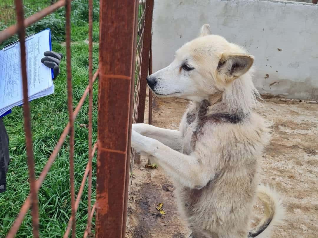 Opa SIOUX kam bei unserem Besuch, neugierig und freundlich an den Zaun gelaufen, um uns zu begrüßen. Die heißen Sommertage setzen ihm sichtlich zu. Bereits viele kalte Winter und brütend heiße Sommer musste er hinter Gittern im Shelter verbringen.
