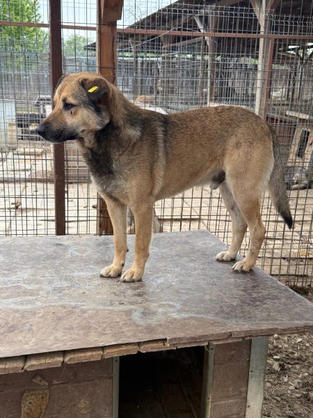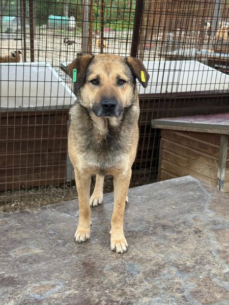 Der Bub blieb die ganze Zeit auf seinem Hüttendach, war aber grundsätzlich interessiert an uns. Er nimmt Leckerlies aus der Hand, berührt man ihn dabei an der Schnauze, so zeigt er manchmal ein „Verlegenheitslächeln“ und weicht zurück. Die Leckerchen nimmt er aber sehr sanft aus der Hand, insofern gehen wir davon aus, dass er sich dabei um eine Übersprungshandlung handelt. In seinem neuen Zuhause sollte man sich daher mit zurückhaltenden / schüchternen Hunden auskennen.