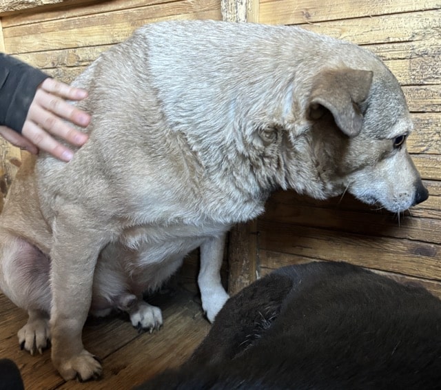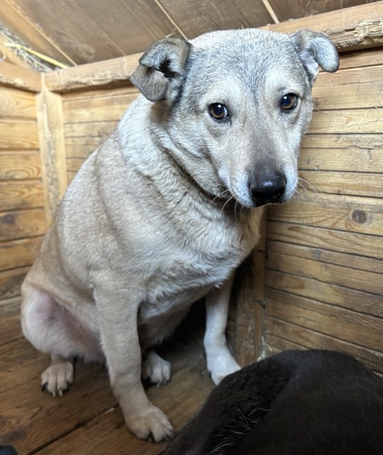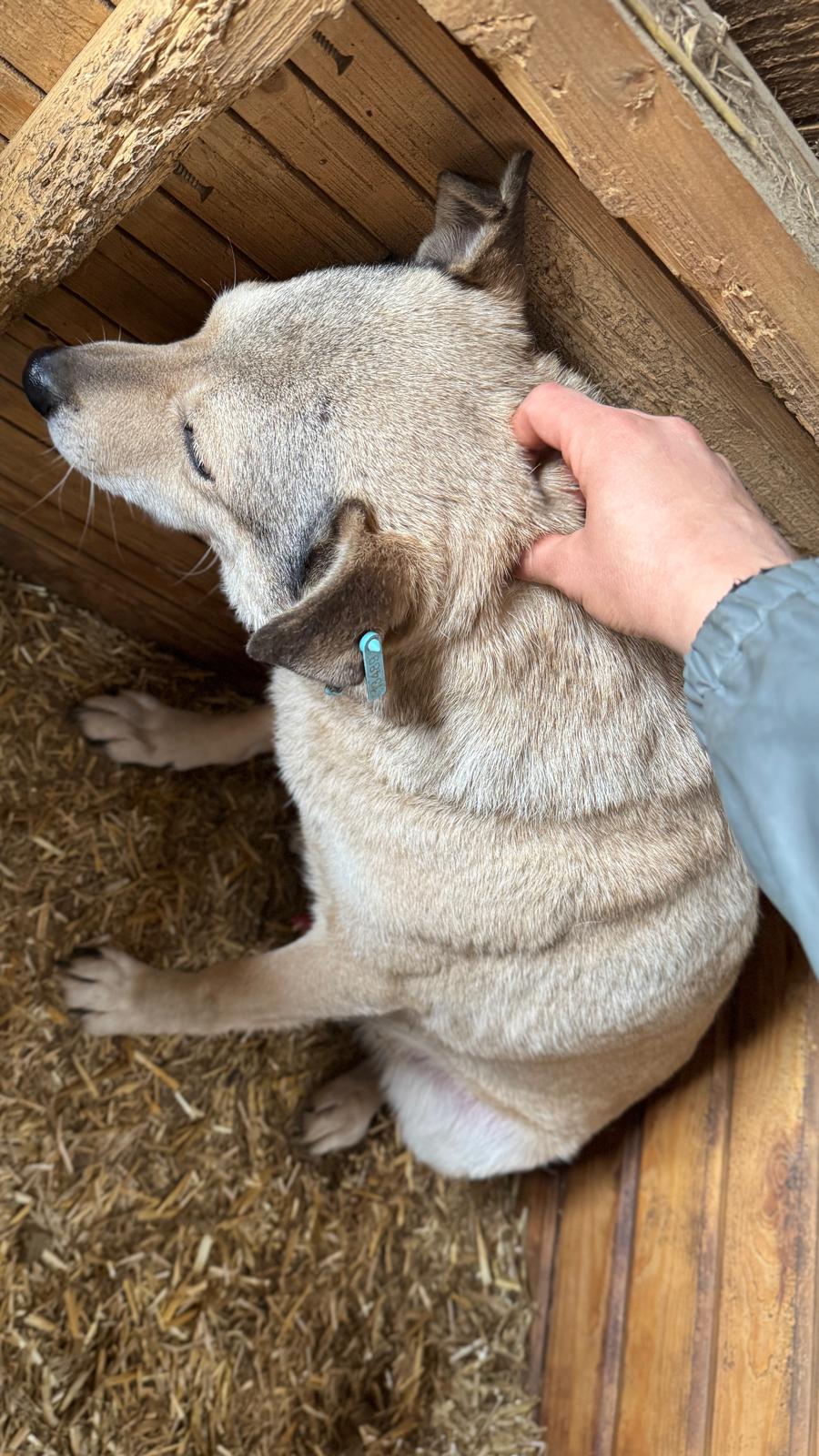 SIR HENRY konnten wir auch dieses Mal wieder in der Hütte streicheln. Er fühlt sich dabei unwohl, zeigt aber kein Abwehrverhalten. Leckerlies wollte er nicht von uns annehmen. Leider ist SIR HENRY zu dick und sein rechtes Ohr ist eingerissen. Mit Artgenossen ist SIR HENRY sehr verträglich und ein Ersthund würde ihm sicher bei der Eingewöhnung helfen.