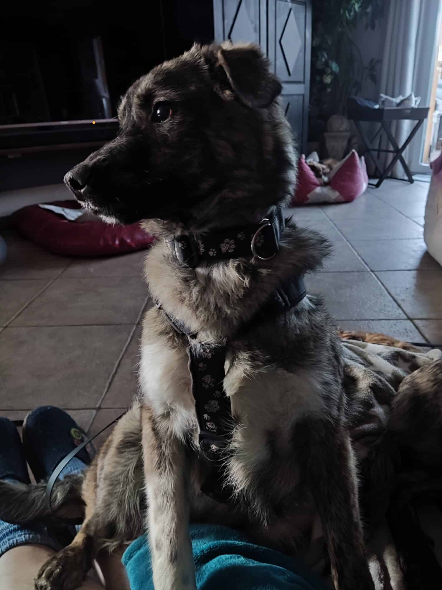 Siri‘s Schwester Tammi hat durch ihr liebenswertes Wesen den Weg zur Pflegestelle für Siri freigemacht. Siri musste einfach auch kommen dürfen. Optisch durch das wunderschön gestromte Fell als Geschwister erkennbar, ist sie doch vom Verhalten etwas anders.